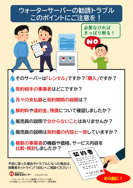 国民生活センターよりウォーターサーバーの勧誘トラブルについてのお知らせです。