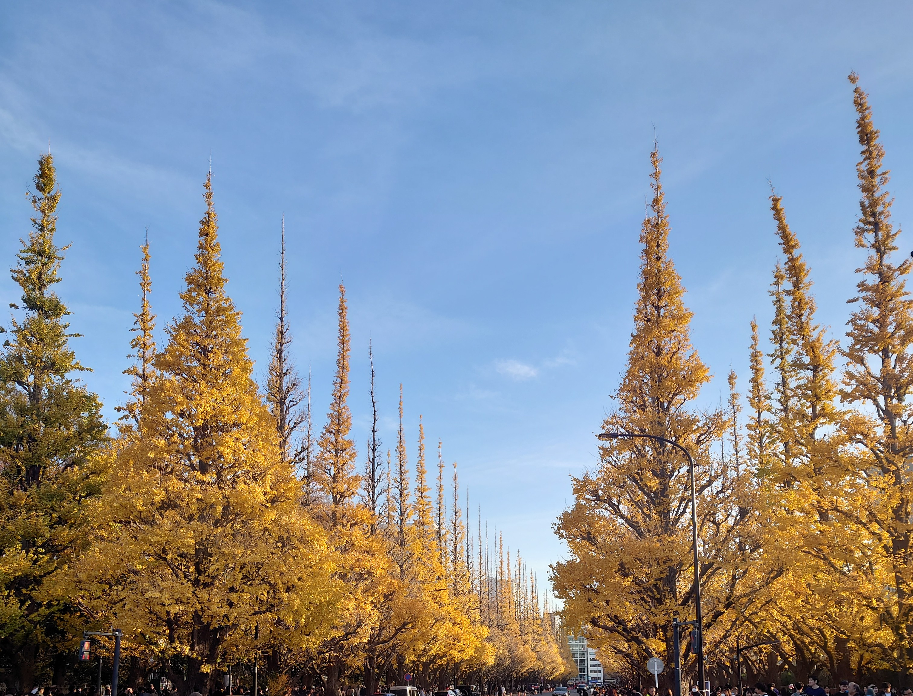 先日、近くで所用があり、帰り道の明治神宮外苑のいちょう並木を見てきました。