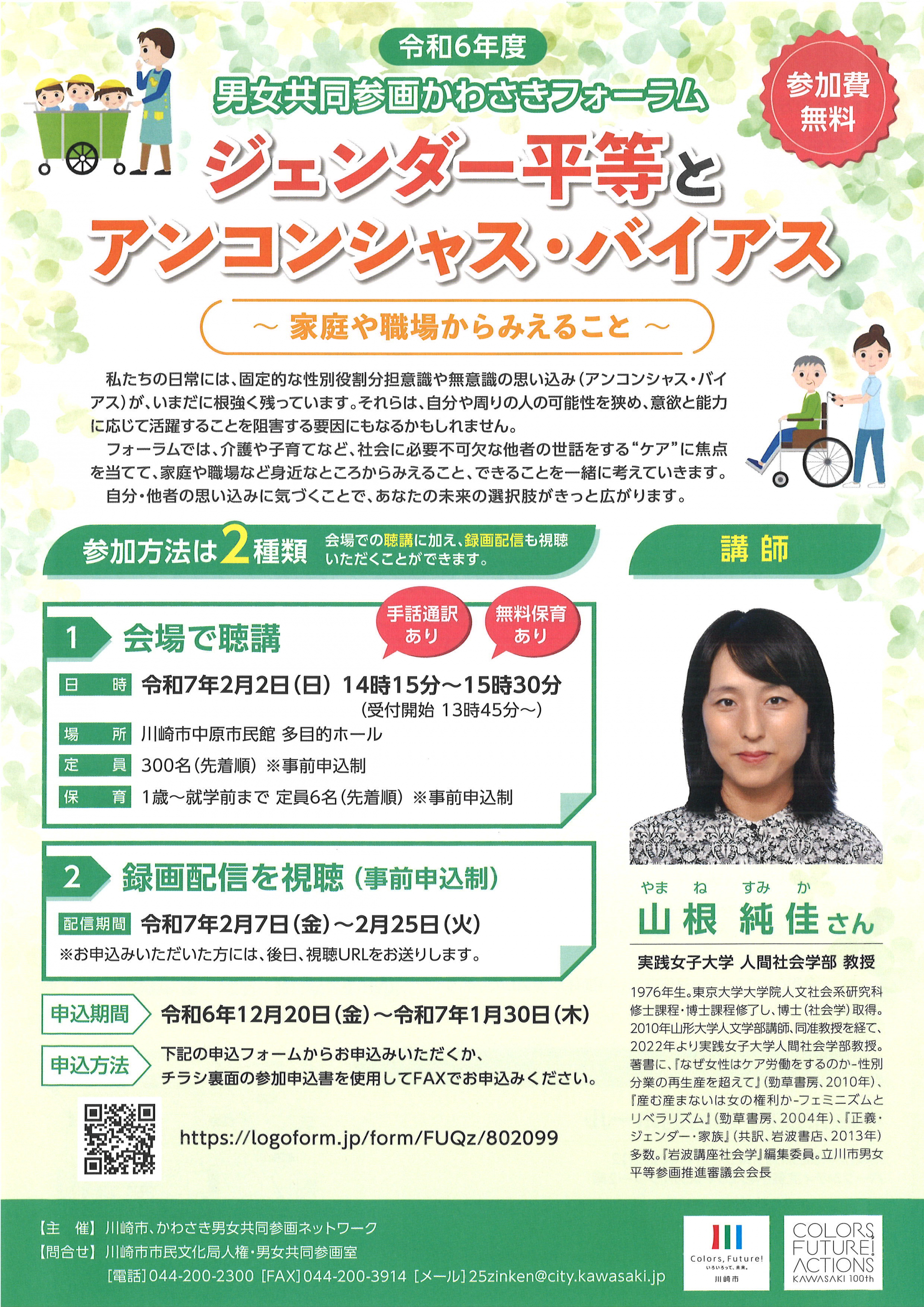 令和6年度 男女共同参画かわさきフォーラム ジェンダー平等とアンコンシャス・バイアス~家庭や職場から