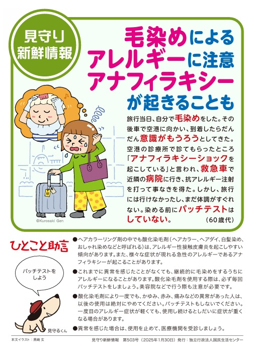 国民生活センターより毛染め時のアレルギーに関する注意喚起です。