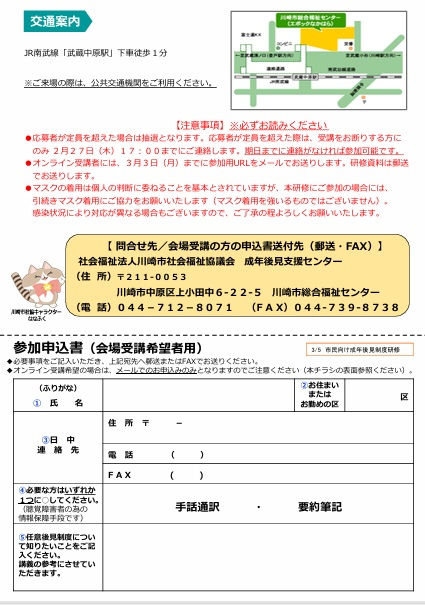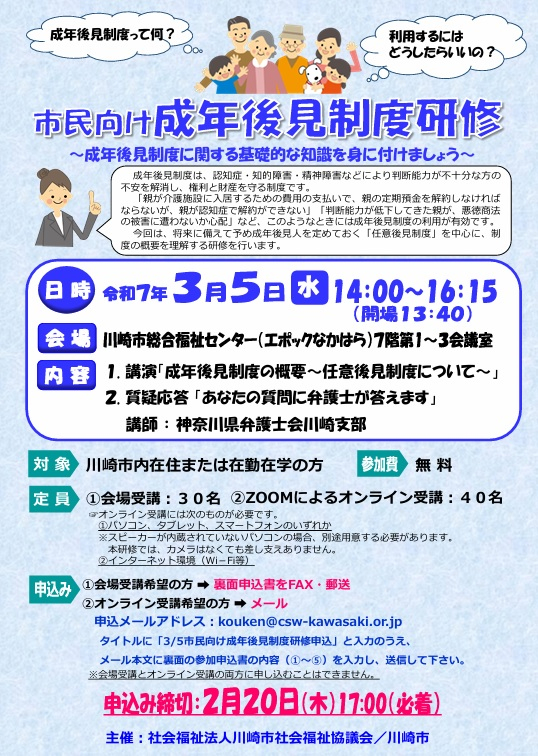 ◆定員 会場受講30名(川崎市総合福祉センター7階 第1~3会議室)