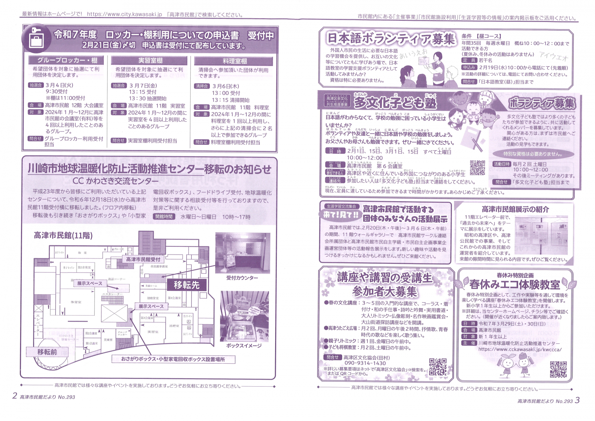 2025.02.25 お知らせ 【久末居宅】高津市民館だより2月号。 Tweet シェアする 高津市民館だより2月号です。 今回は令和7年度に向けてのお知らせが中心です。 【久末居宅 S】 前の記事 2025.02.25 お知らせ 【久末居宅】宮前市民館だより2月号。 次の記事 2025.02.19 お知らせ 【久末居宅】プラザだより2月号。 一覧へ戻る