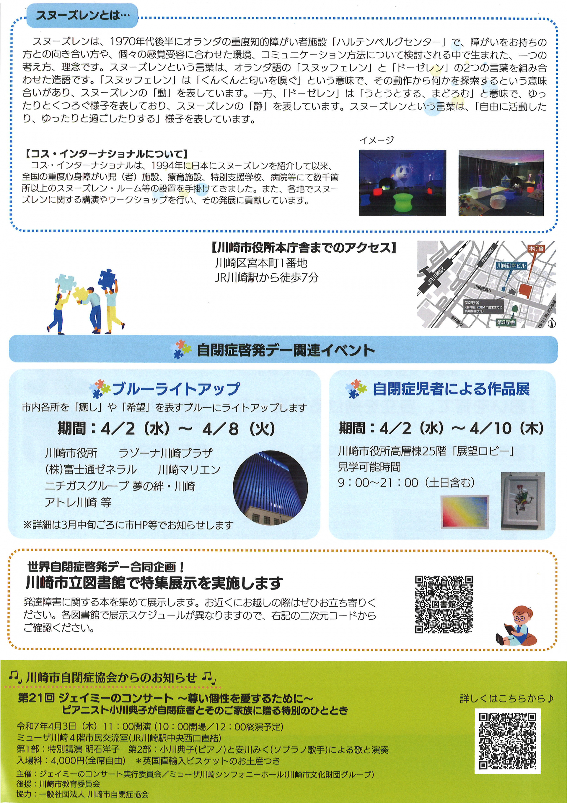 「世界自閉症啓発デーin川崎」のお知らせです。