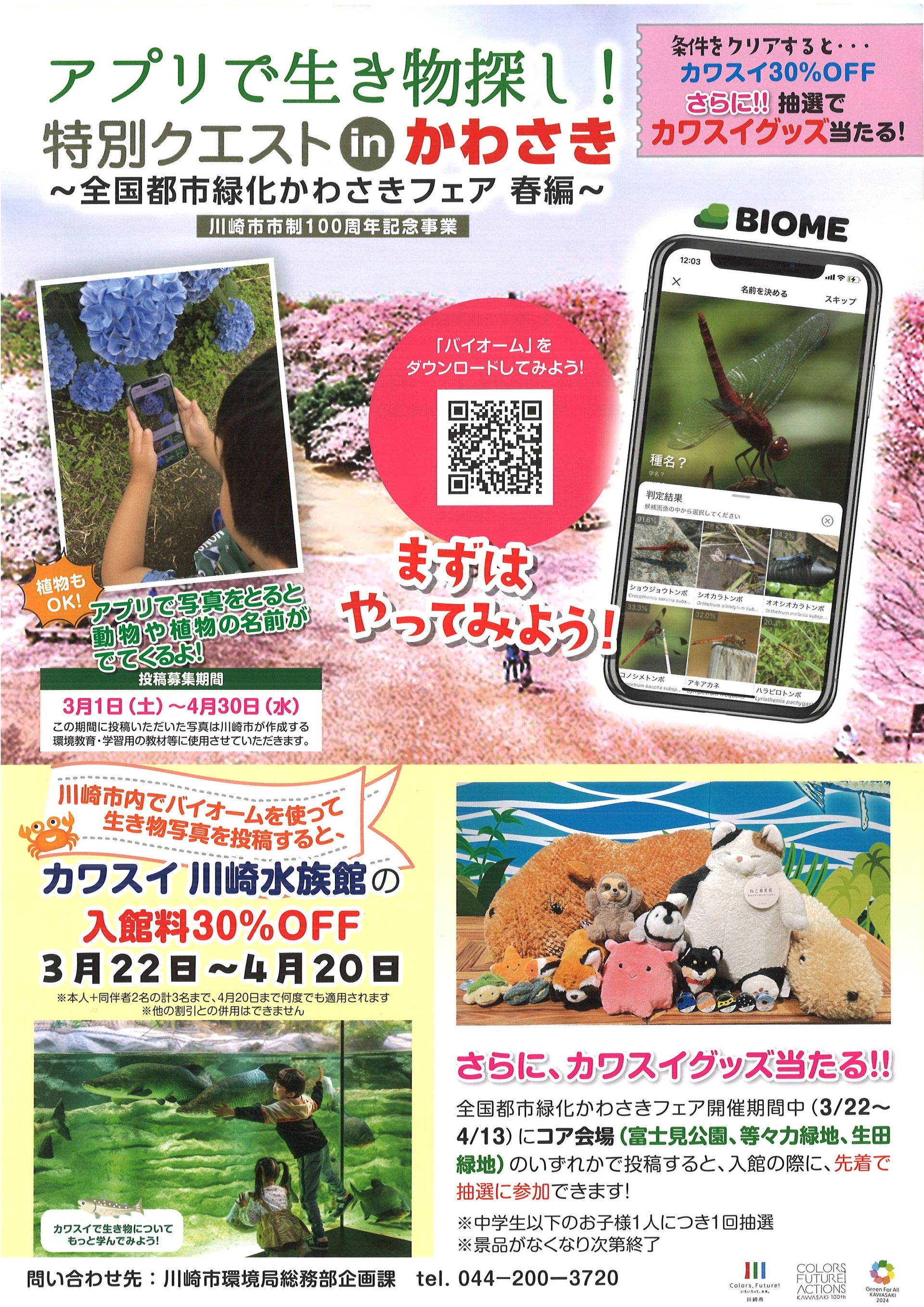 「アプリで生き物探し!特別クエストinかわさき」のお知らせです。