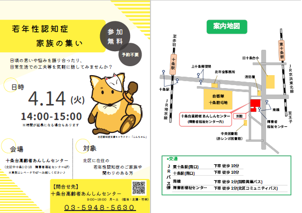【十条台包括】若年性認知症家族の集い開催のお知らせ