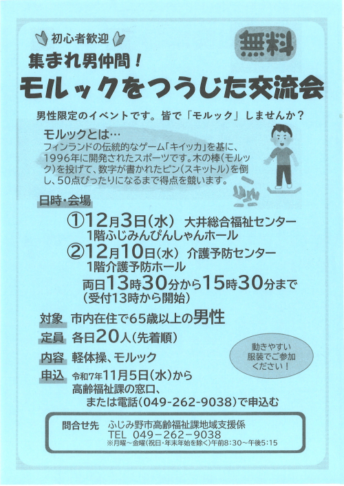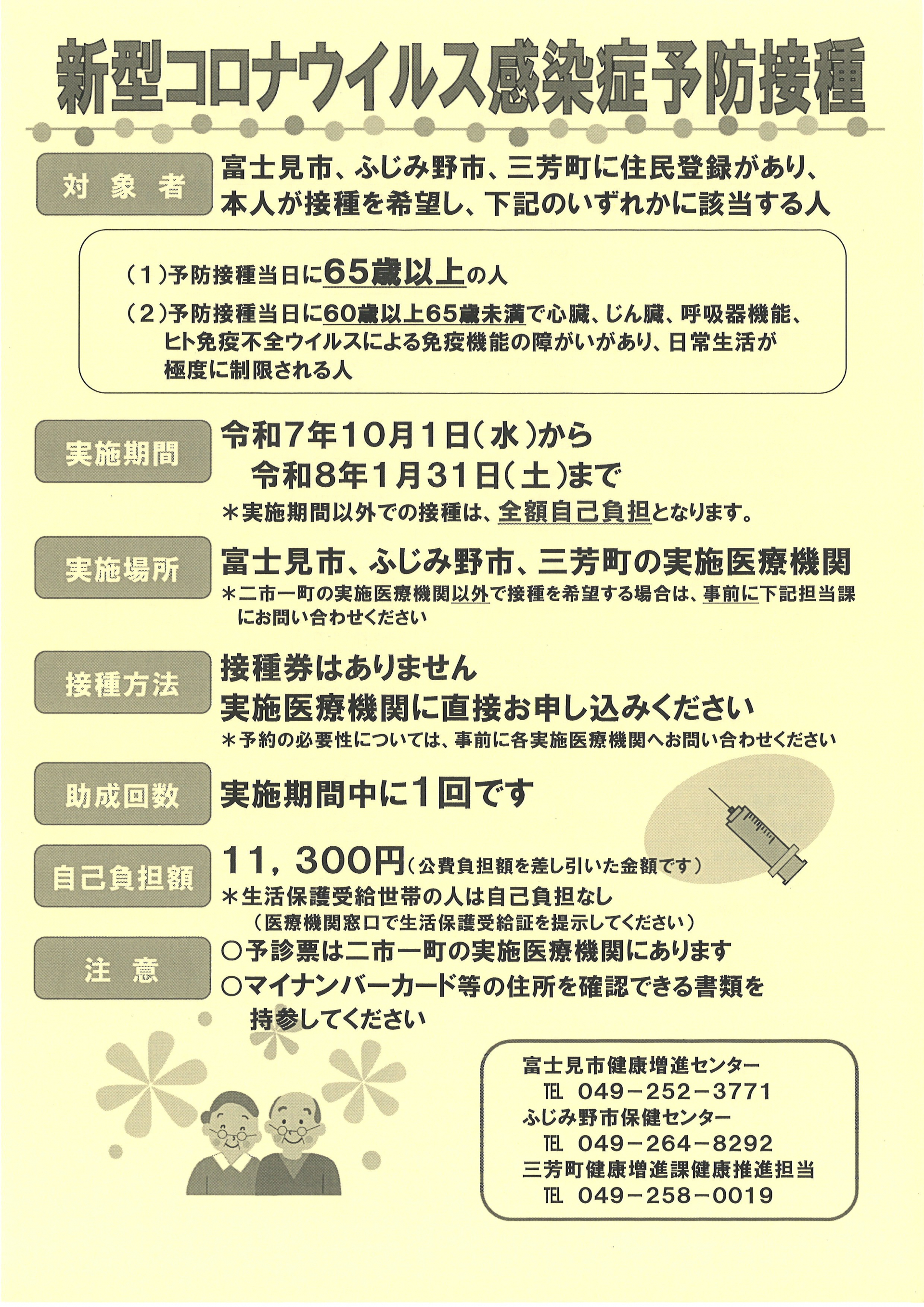 2025.12.01 お知らせ 新型コロナウィルス感染症予防接種のお知らせ Tweet シェアする 新型コロナウィルス感染症予防接種のお知らせです。 ご希望される方は、実施医療機関へお問い合わせください。 次の記事 2025.12.01 お知らせ 12月3日(水)、12月10日(水)男性限定 モルックをつうじた交流会 が開催されます。 一覧へ戻る