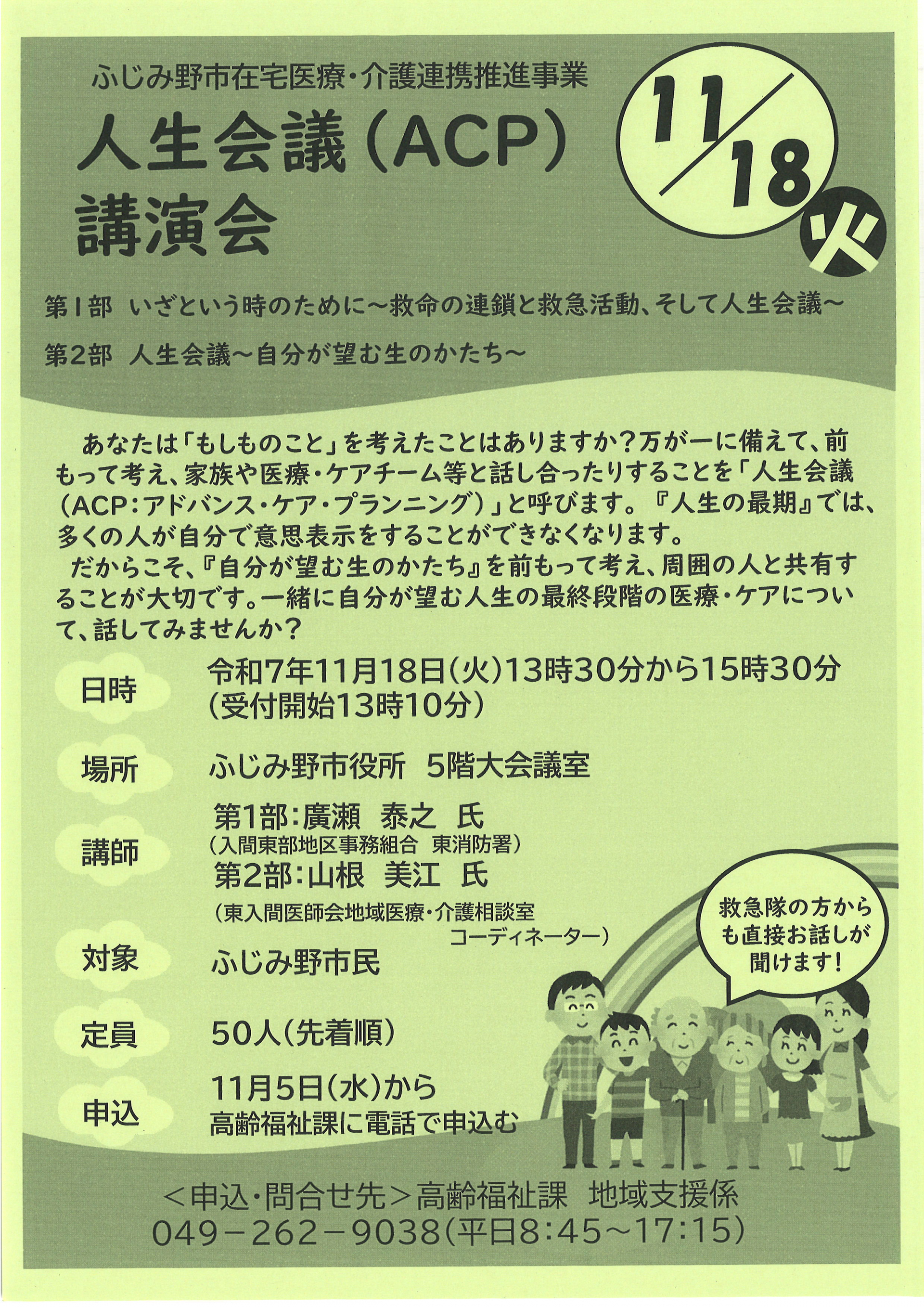 【かすみがおか包括】11月18日(火)人生会議(ACP)講演会が開催されます。