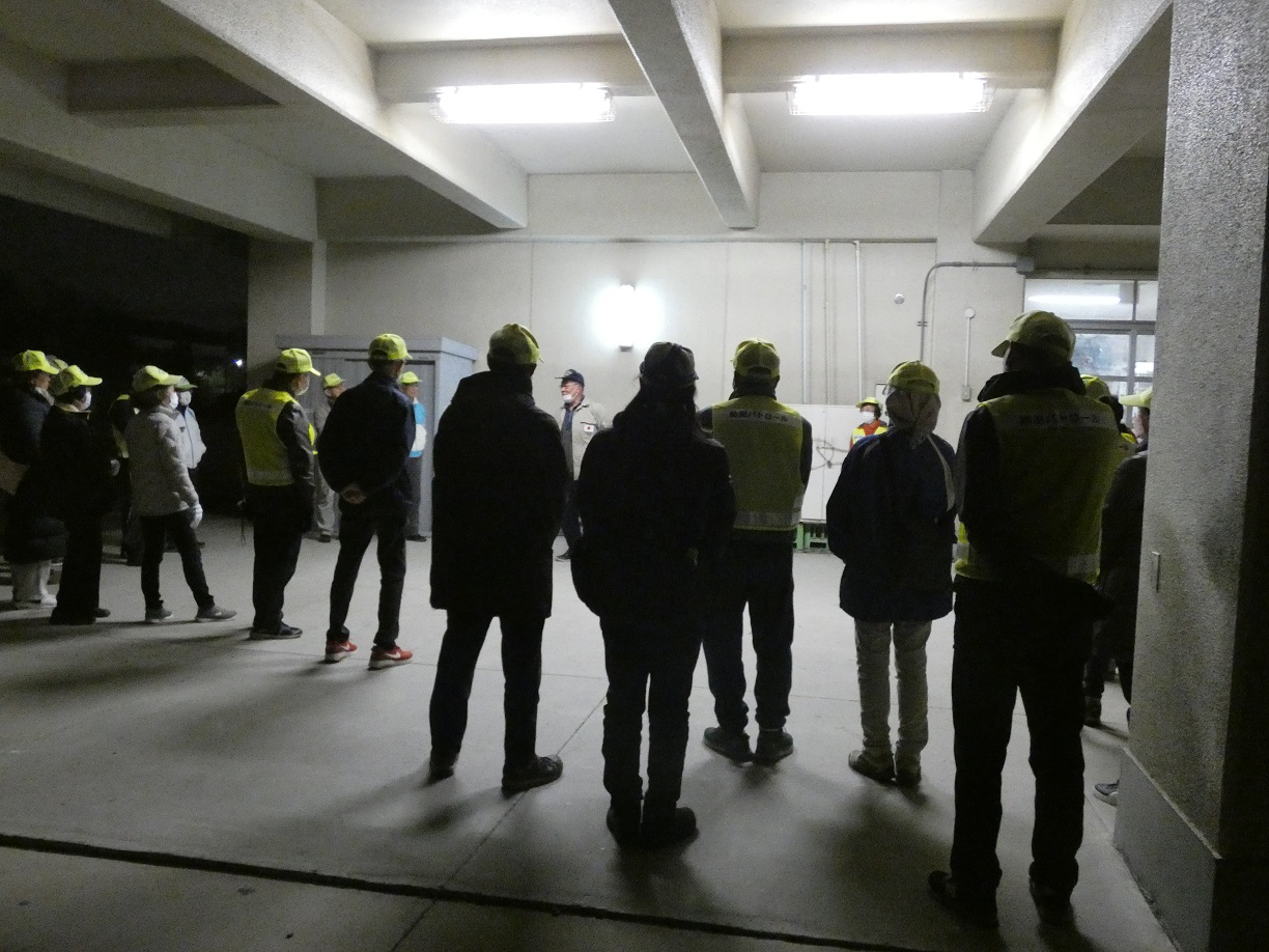 訓練では、まずは大きな投光器をつけ、ある程度の明るさを確保します。