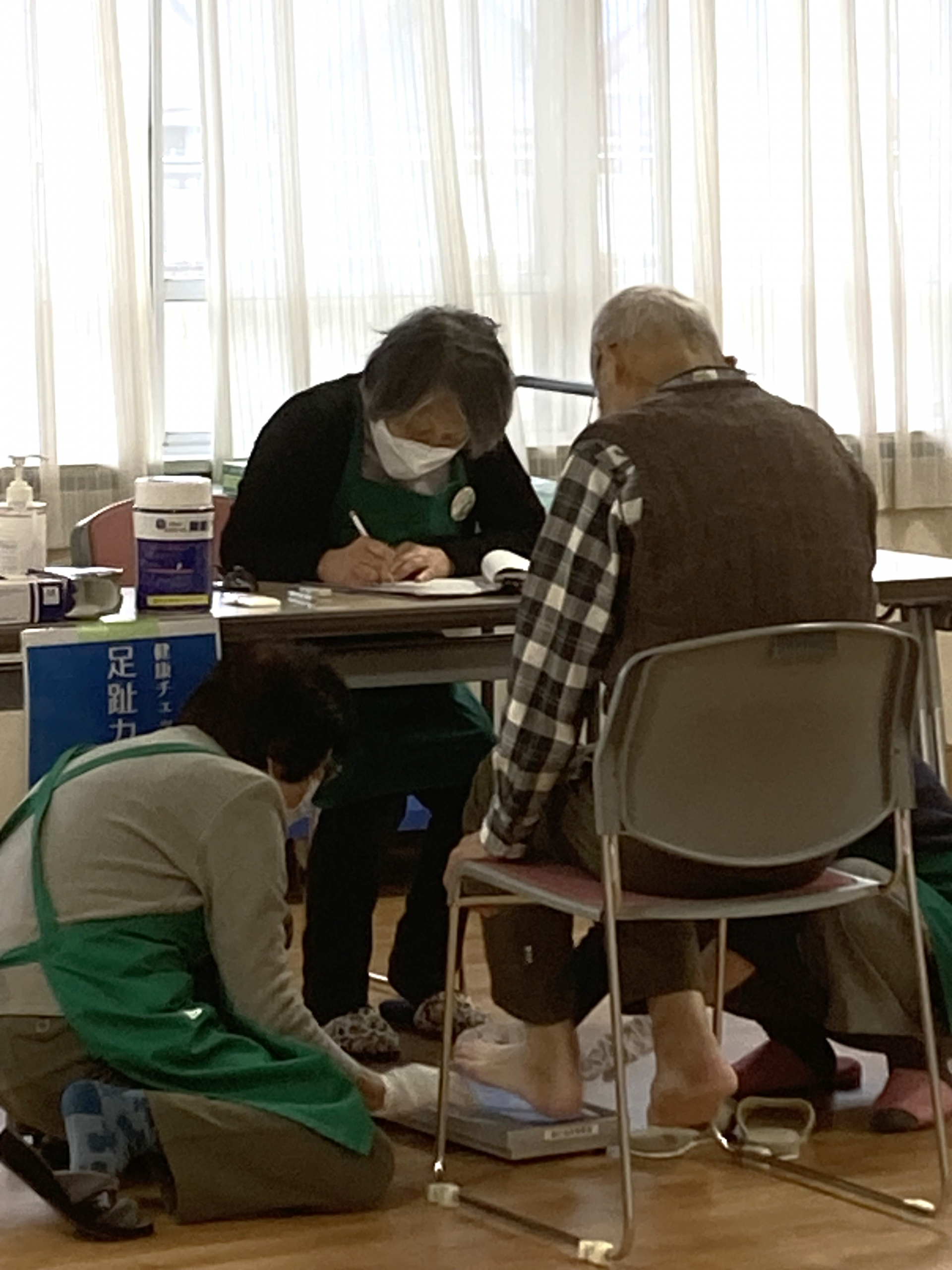 健康チェックの日では基本メニューの計測、血管年齢測定、足趾力チェックに加えて