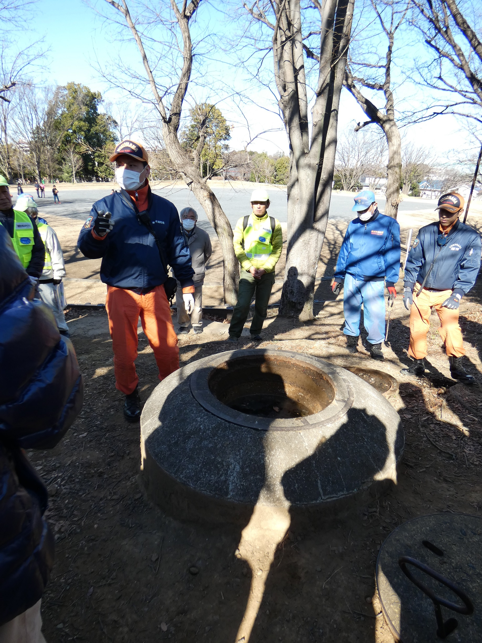 地域の公園にある防火水槽。どんな時に使うのかというと断水で消火栓が使えないときに使うのだそうです。