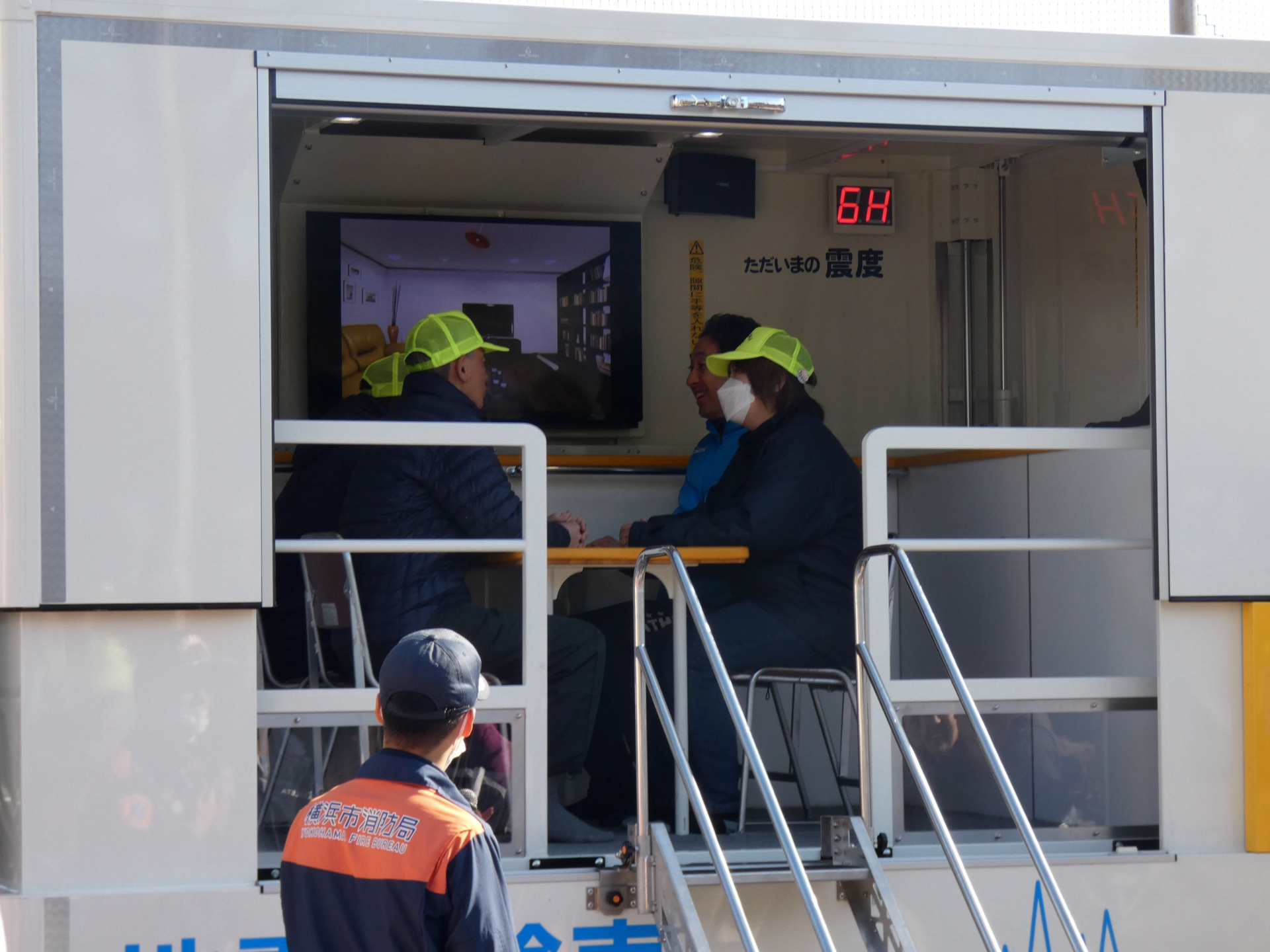 今回はハマッコトイレの設置、起震車による地震の揺れの体験、消火栓や防火水槽の確認、