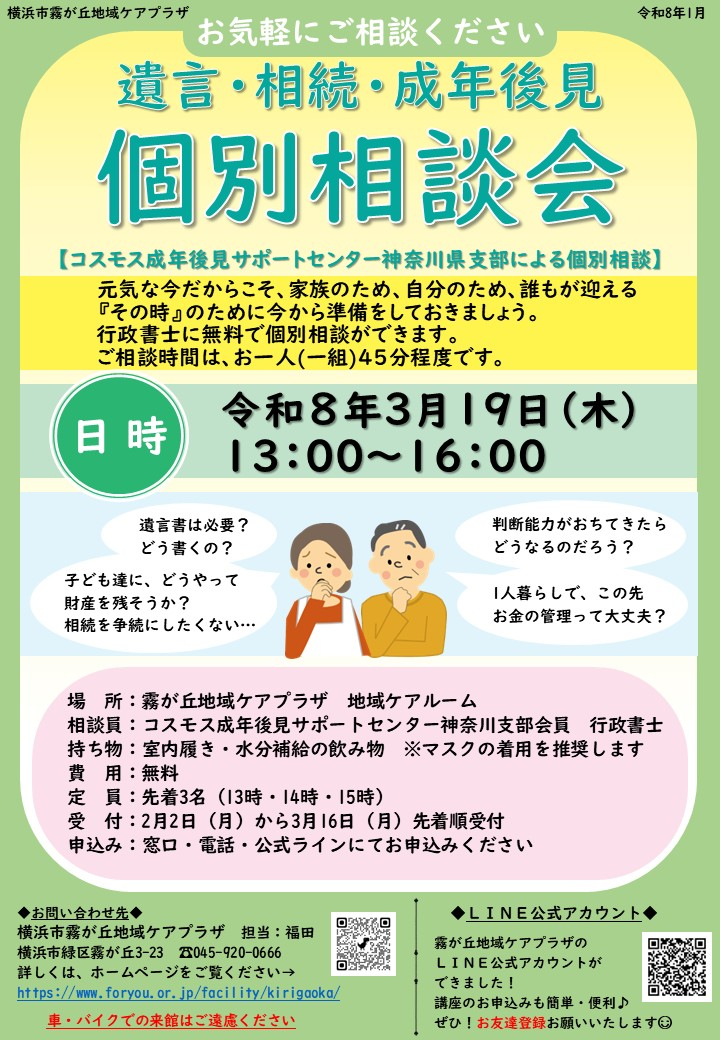 遺言・相続・成年後見等に関する「個別相談会」を開催いたします。