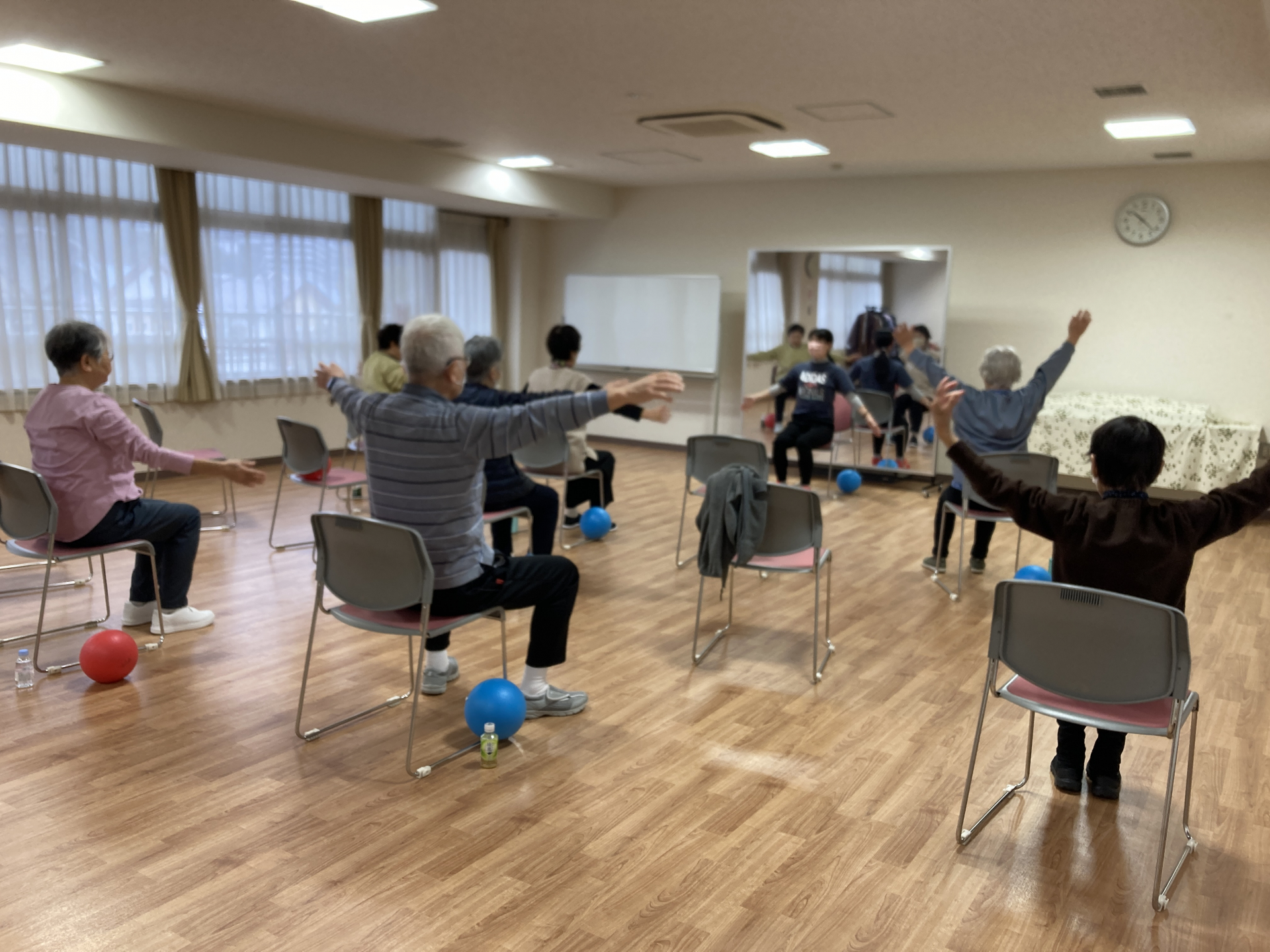 ゆるやかな体操で体をほぐしたり、脳トレ体操も取り入れ、手足を同時に動かす運動やリズムに合わせた動きにも挑戦したりと椅子に座りながら無理なく身体を動かすことが出来ます。
