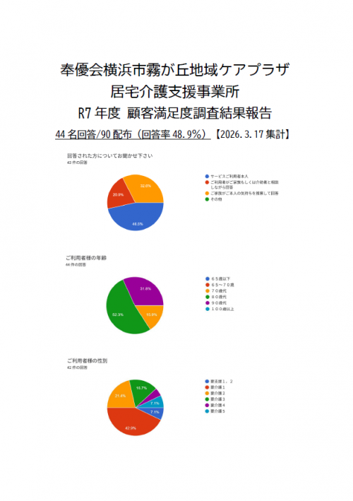 2026.04.13 【霧が丘居宅】アンケートの結果のお知らせ 活動報告 2026.01.22 【霧が丘居宅】法人事例研究発表会のお知らせ お知らせ 2025.12.10 【霧が丘居宅】介護者のつどいのご案内 お知らせ 2025.08.20 【霧が丘居宅】最新モデルの車いすを試乗しました。 活動報告 2025.07.18 【霧が丘居宅】奉優会は創立25周年を迎えました お知らせ 2025.07.16 【霧が丘居宅】ケアプランデータ連携システム お知らせ 2025.06.13 【霧が丘居宅】消防避難訓練に参加しました。 活動報告 2025.05.02 【霧が丘居宅】認知症サポーター養成講座を開催 お知らせ 2025.03.12 【霧が丘居宅】介護者のつどいのご案内 お知らせ 2025.02.27 【霧が丘居宅】第17回社会福祉法人奉優会事例研究発表会が開催されました! 活動報告 2025.02.04 【霧が丘居宅】事例研究発表会のお知らせ♪ お知らせ 2025.01.23 【霧が丘居宅】令和6年度 顧客満足度調査結果報告 お知らせ 2025.01.17 【霧が丘居宅】毎週水曜日~ケアマネはカフェにいるカフェ~ お知らせ 2024.12.26 【霧が丘居宅】年末年始休業のお知らせ お知らせ 2024.12.17 【霧が丘居宅】ヒートショックにご注意ください! お知らせ 1 2 3