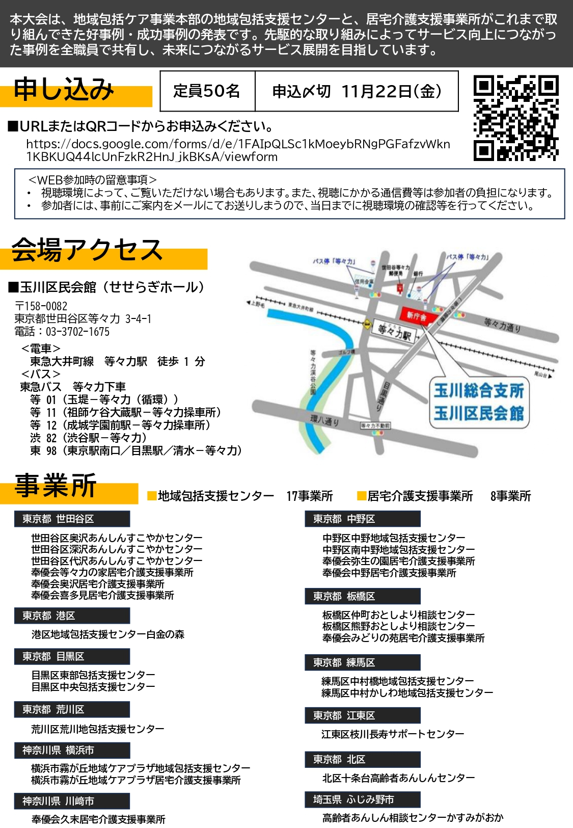 2024.10.25 お知らせ 【喜多見居宅】事例研究発表会のご案内 Tweet シェアする 法人の研修の柱として位置づけられている事例研究発表会のご案内です。 今年は対面とZOOMでのハイブリッド開催となります。会場は玉川区民会館(せせらぎホール)です。(st) 前の記事 2024.10.28 お知らせ 【喜多見居宅】RUN伴+ (プラス) 『喜多見・宇奈根コース』 次の記事 2024.10.23 お知らせ 【喜多見居宅】喜多見地区連携医事業研修会に参加しました 一覧へ戻る