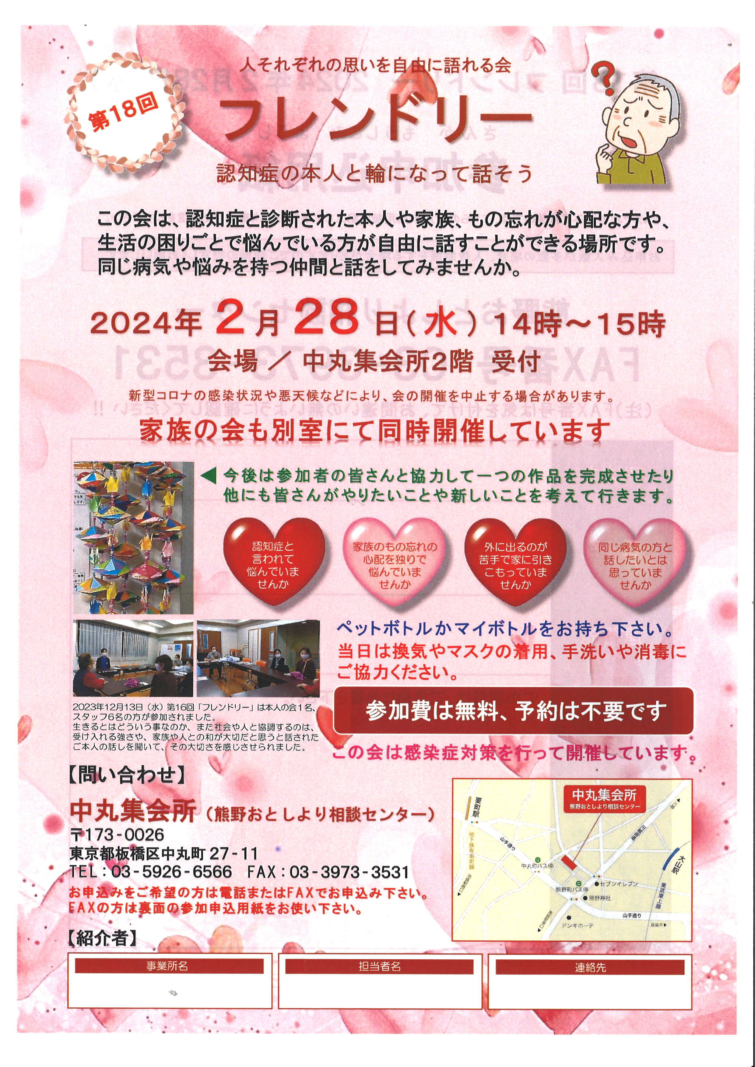 【熊野包括】認知症の本人と輪になって話そう「フレンドリー」を開催します。