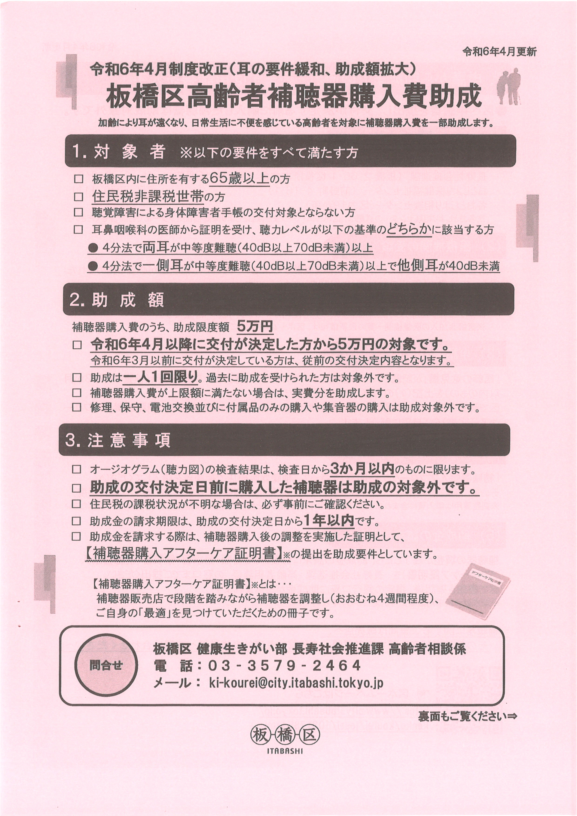 【熊野包括】板橋区高齢者補聴器購入費助成の要綱が改正されました。