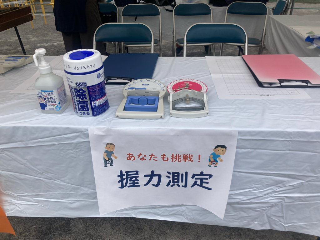 「わ~、意外と握力あった~。」と嬉しそうに笑う小学生や、「〇〇ちゃん、頑張って!」とわが子を応援する親御さんなど、本当にたくさんの方々とふれあうことができた一日でした。測定に来てくれた方は、4歳から80歳を超える方まで全部で345名でした。