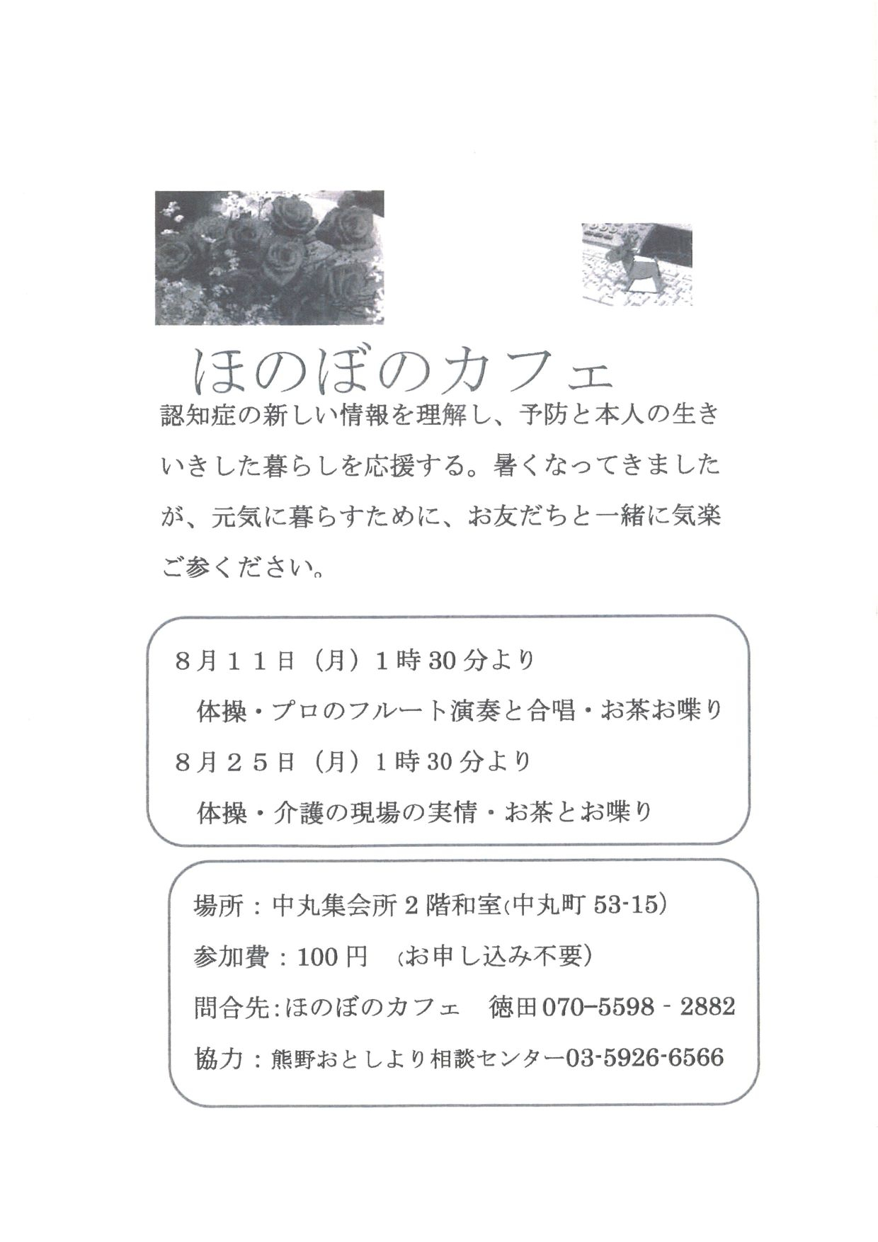 毎月第2・4週月曜日 午後1時30分~は「ほのぼのカフェ」で