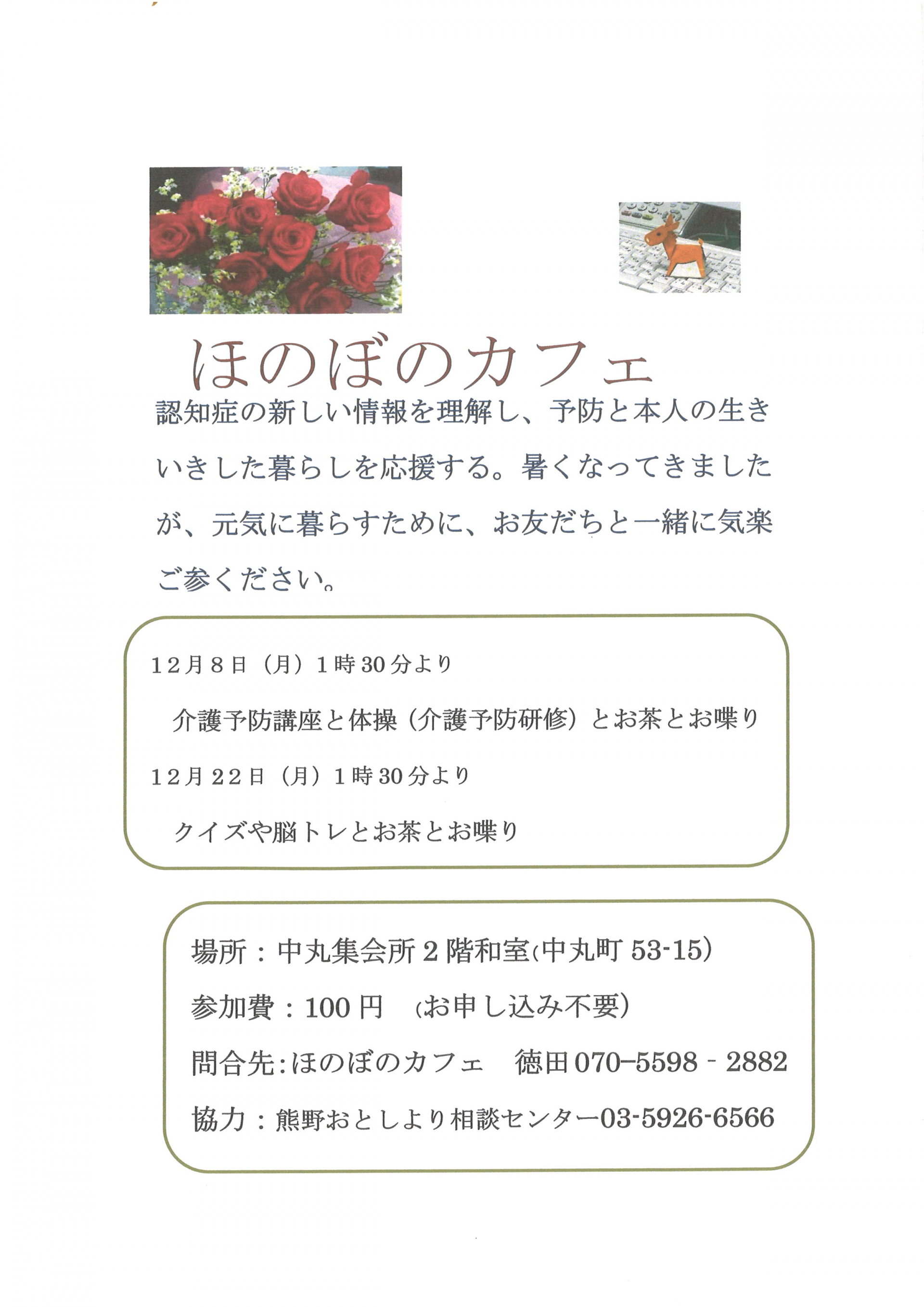 12月「ほのぼのカフェ☕」の予定をお知らせします。