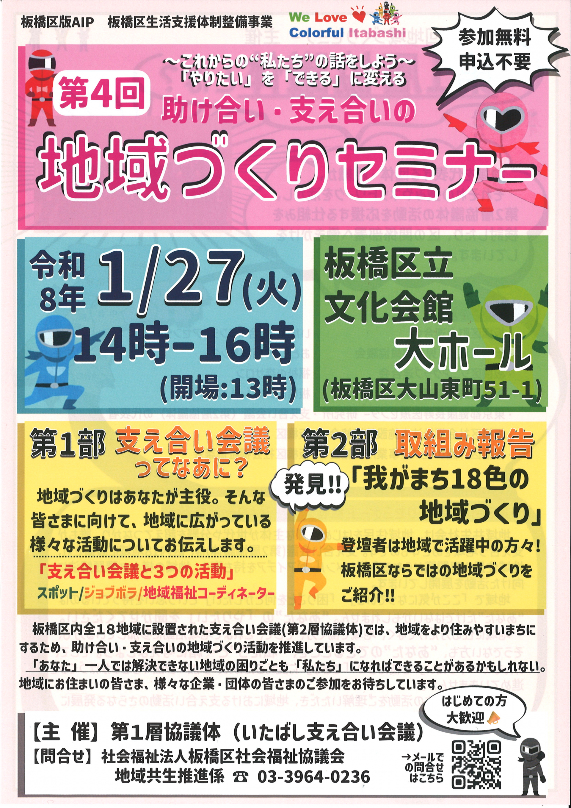 1月27日(火)板橋区立文化会館にておこなわれた「第4回助け合い・支え合いの地域セミナー」に参加しました。