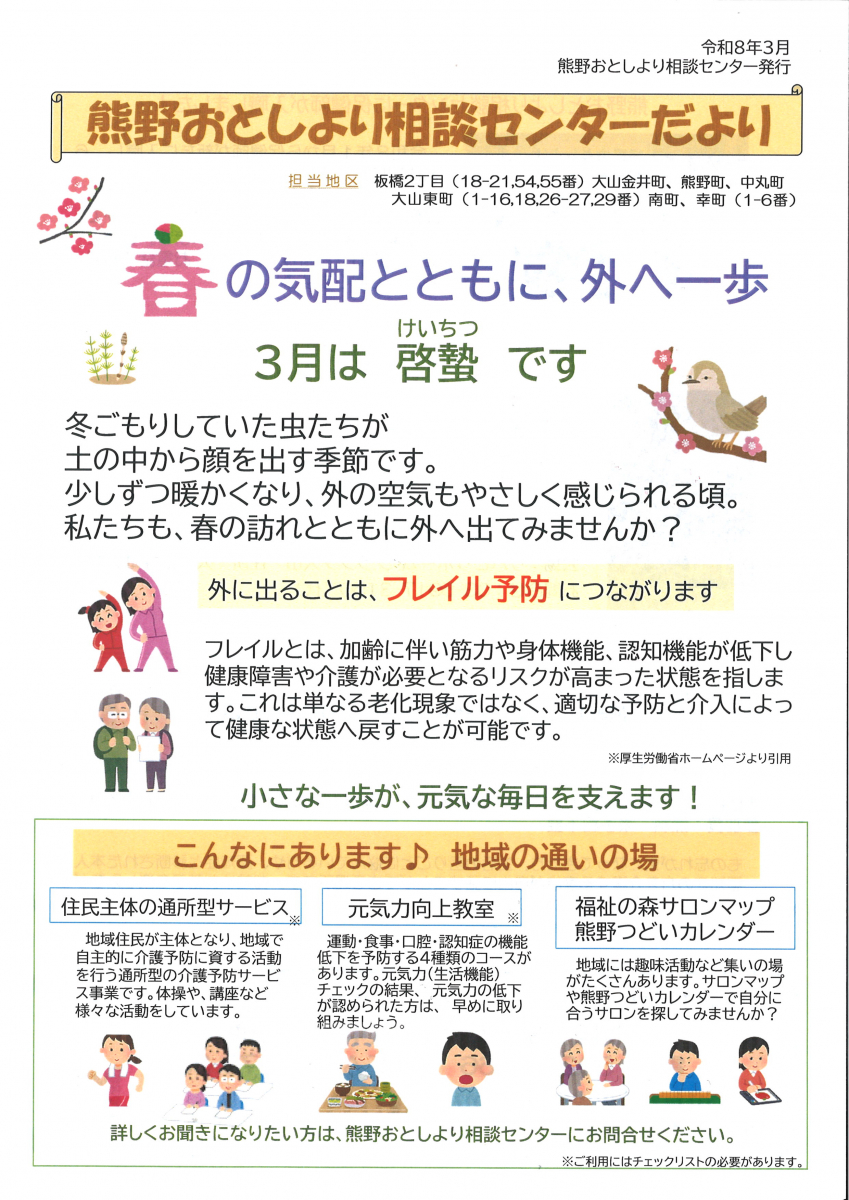 【熊野包括】3月センター便り「春の気配とともに、外へ一歩」