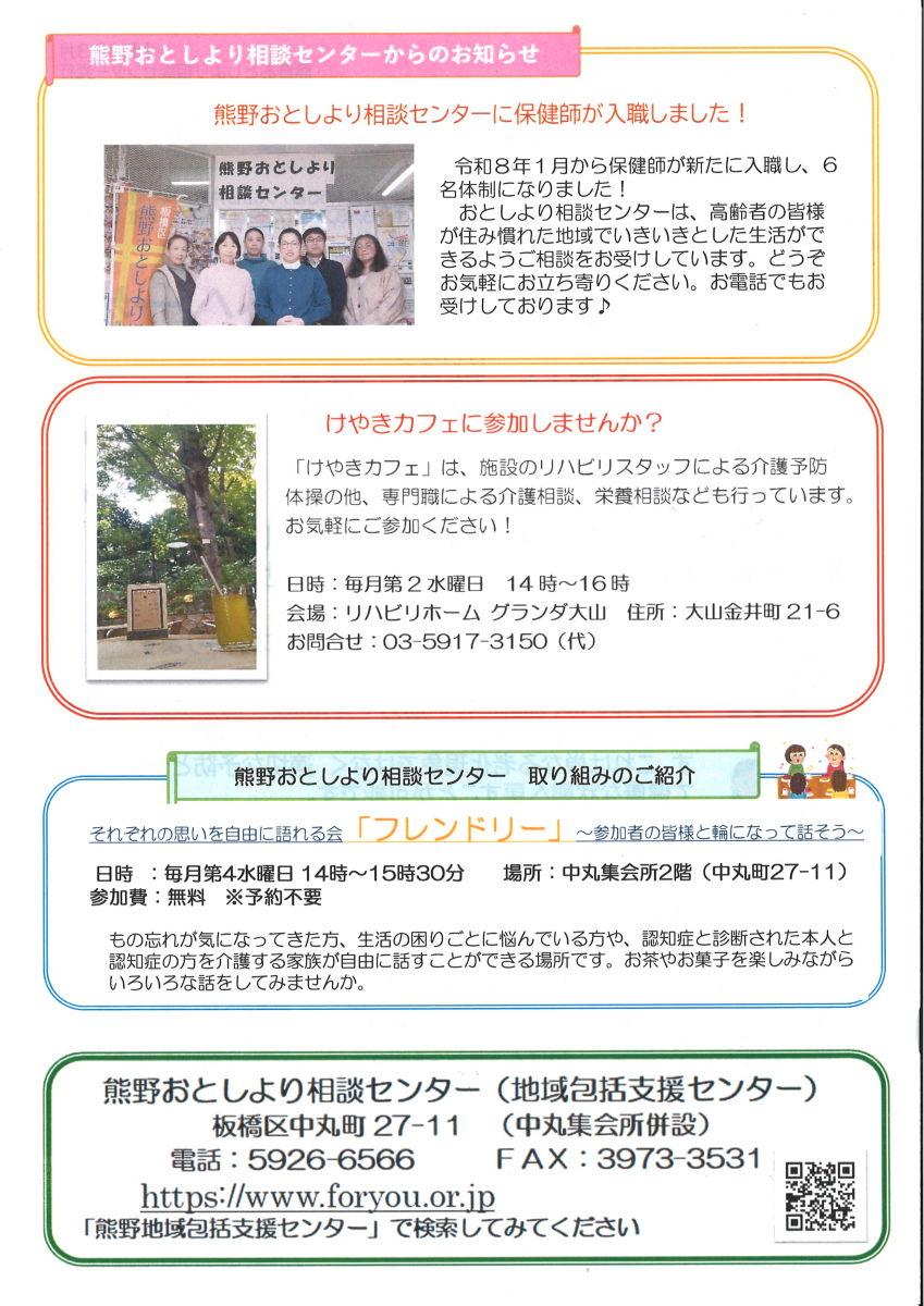 裏面では、熊野おとしより相談センターメンバーの紹介もさせていただきました。