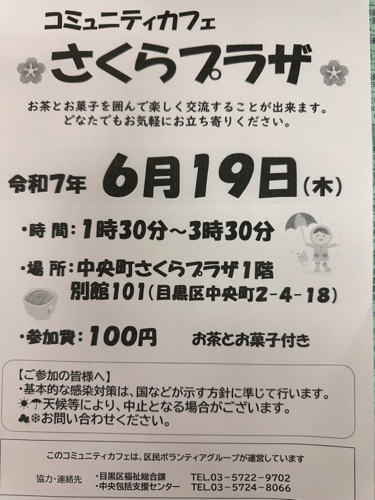 【目黒中央包括】コミュニティカフェ さくらプラザのお誘い