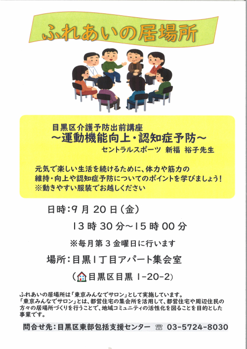 2024.11.15 【目黒区東部包括】ふれあいの居場所を実施しました 活動報告(IN) #ふれあいの居場所 #防犯 #詐欺 2024.10.21 【目黒東部包括】ふれあいの居場所を開催しました 活動報告 #ふれあいの居場所 #目黒区 #高齢者の住まい 2024.09.27 【目黒東部包括】「ふれあいの居場所」開催しました 活動報告 #ふれあいの居場所 #目黒区 2024.09.12 【目黒東部包括】「ふれあいの居場所」開催します お知らせ #ふれあいの居場所 #目黒区 #介護予防出前講座 2024.07.26 【目黒東部包括】ふれあいの居場所を開催しました! 活動報告 #ふれあいの居場所 #CSW 2024.07.13 【目黒東部包括】ふれあいの居場所を開催します! お知らせ #ふれあいの居場所 2024.06.21 【目黒区東部包括】ふれあいの居場所開催しました♪ 活動報告 #ふれあいの居場所 #熱中症予防 2024.05.25 【目黒区東部包括】ふれあいの居場所を開催しました! 活動報告 #ふれあいの居場所 #フレイル予防 #脳トレ #手ぬぐい体操 2024.04.19 【東部包括】ふれあいの居場所開催しました♪ 活動報告 #ふれあいの居場所 #地域のつながり #東京みんなでサロン 2023.12.21 【目黒東部包括】ふれあいの居場所を開催しました 活動報告 #目黒区 #高齢者 #ふれあいの居場所