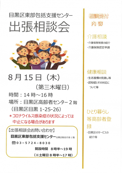 2024.11.26 高齢者センター出張相談会を開催しました 活動報告 #目黒区 #高齢者センター #出張相談会 2024.08.13 【目黒東部包括】高齢者センター出張相談会を開催します! お知らせ #高齢者センター #目黒区 2024.06.20 【目黒東部包括】本日高齢者センター出張相談会を開催します! お知らせ #出張相談会 #高齢者センター #目黒区 2024.05.23 【目黒区東部包括】高齢者センター出張相談会を開催しました 活動報告 #高齢者センター #出張相談会 #目黒区 2024.03.14 【目黒東部包括】高齢者センター出張相談会を開催します お知らせ #目黒区 #高齢者センター 2024.02.16 【目黒区東部包括】高齢者センター出張相談会を開催しました 活動報告 #高齢者センター #出張相談会 2024.01.22 【目黒区東部包括】高齢センター出張相談会を開催しました 活動報告 #高齢者センター #出張相談会