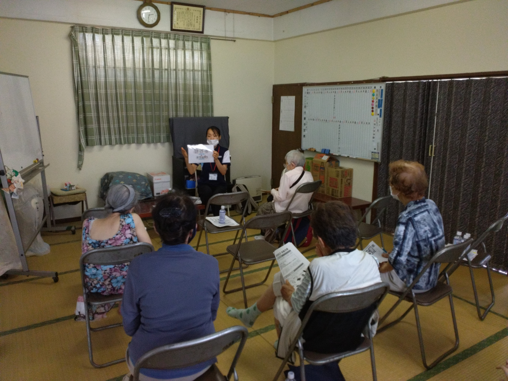 今回は、「高齢者の食生活・栄養改善」をテーマに、講師の方に来ていただき講義をしていただきました。食欲が落ちやすい夏にしっかり栄養を取るために、工夫できることなどを教えていただきました。