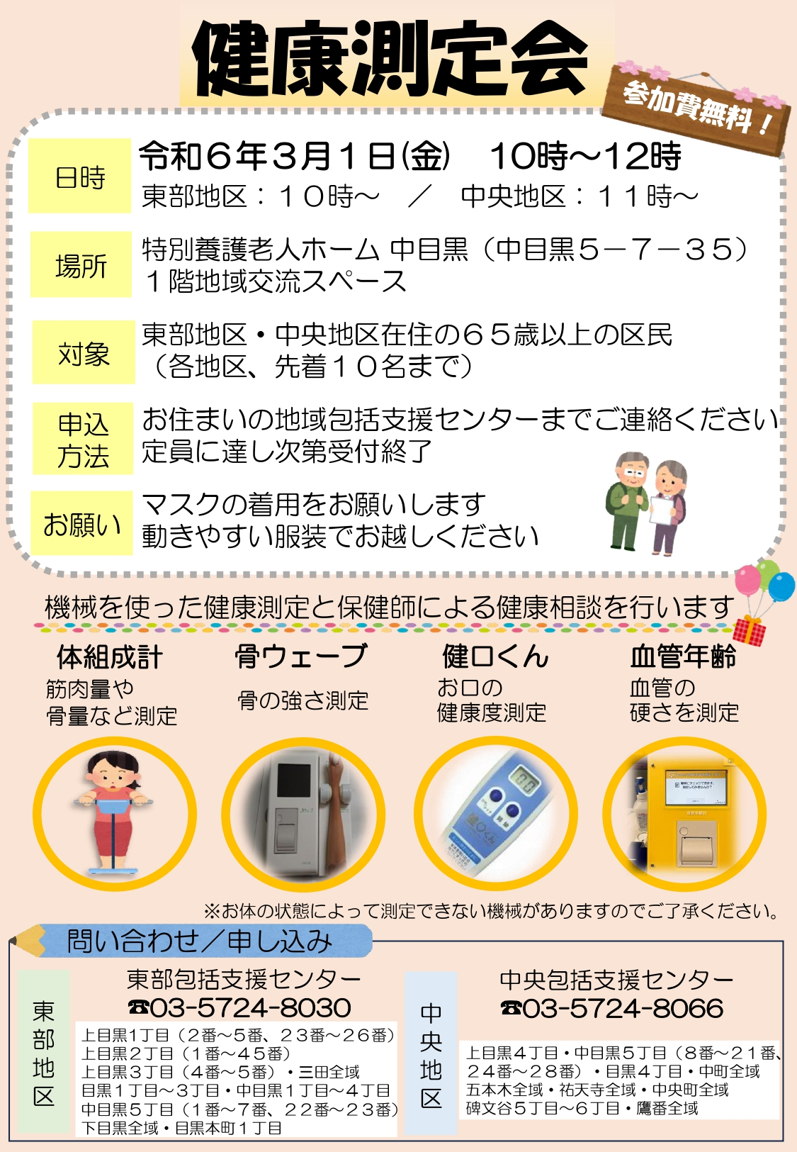 【目黒東部包括】3/1健康測定会を開催します!