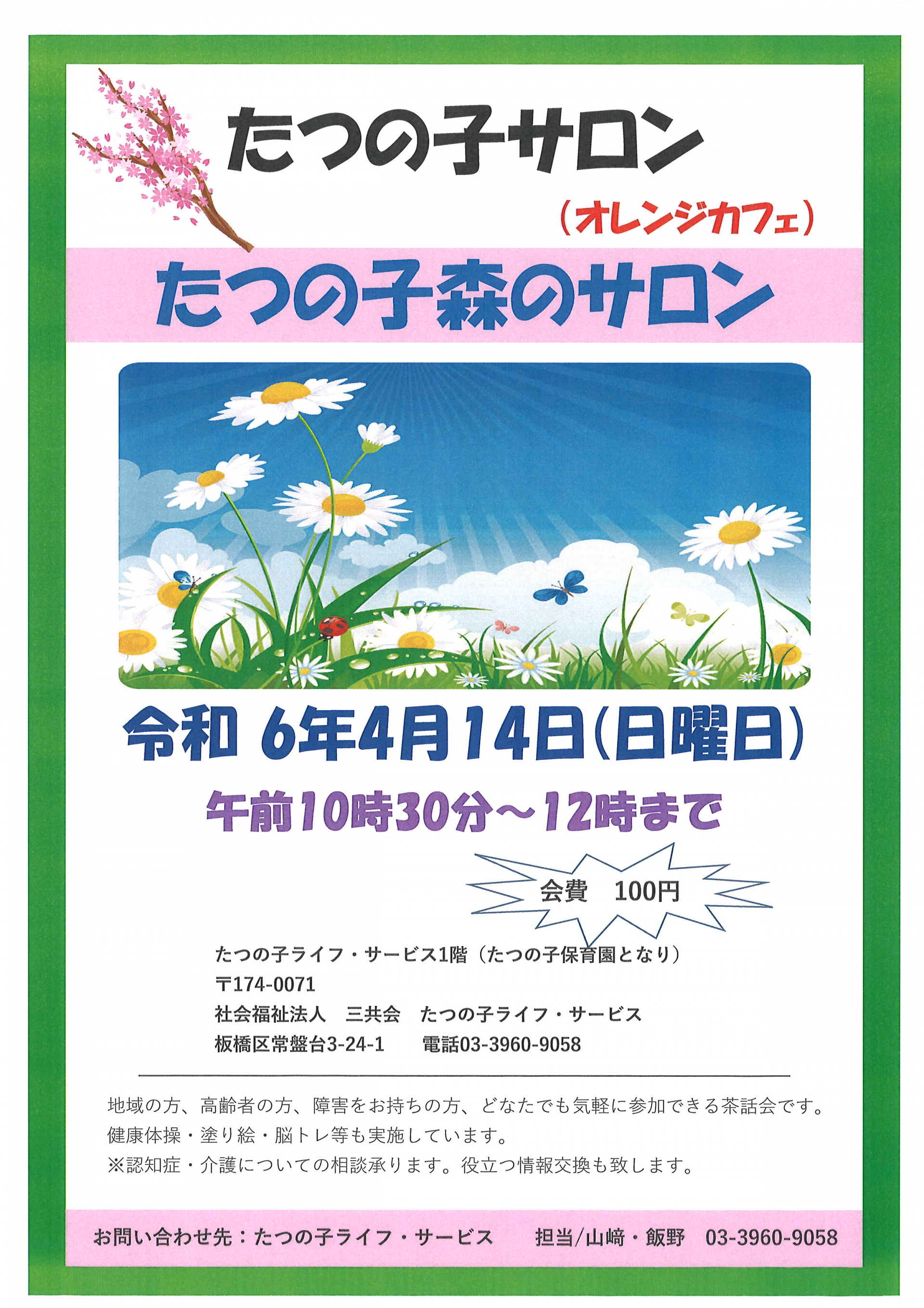 2024.04.12 お知らせ 【みどりの苑居宅】オレンジカフェのご案内 Tweet シェアする オレンジカフェのお知らせ 板橋区常磐台でオレンジカフェが開催されます。 地域の方は、どなたでも参加できる会のようです。 前の記事 2024.04.12 お知らせ 【みどりの苑居宅】第2弾 デイサービスに見学に行きました。 次の記事 2024.04.11 お知らせ 【みどりの苑居宅】デイサービスに見学に行きました。 一覧へ戻る