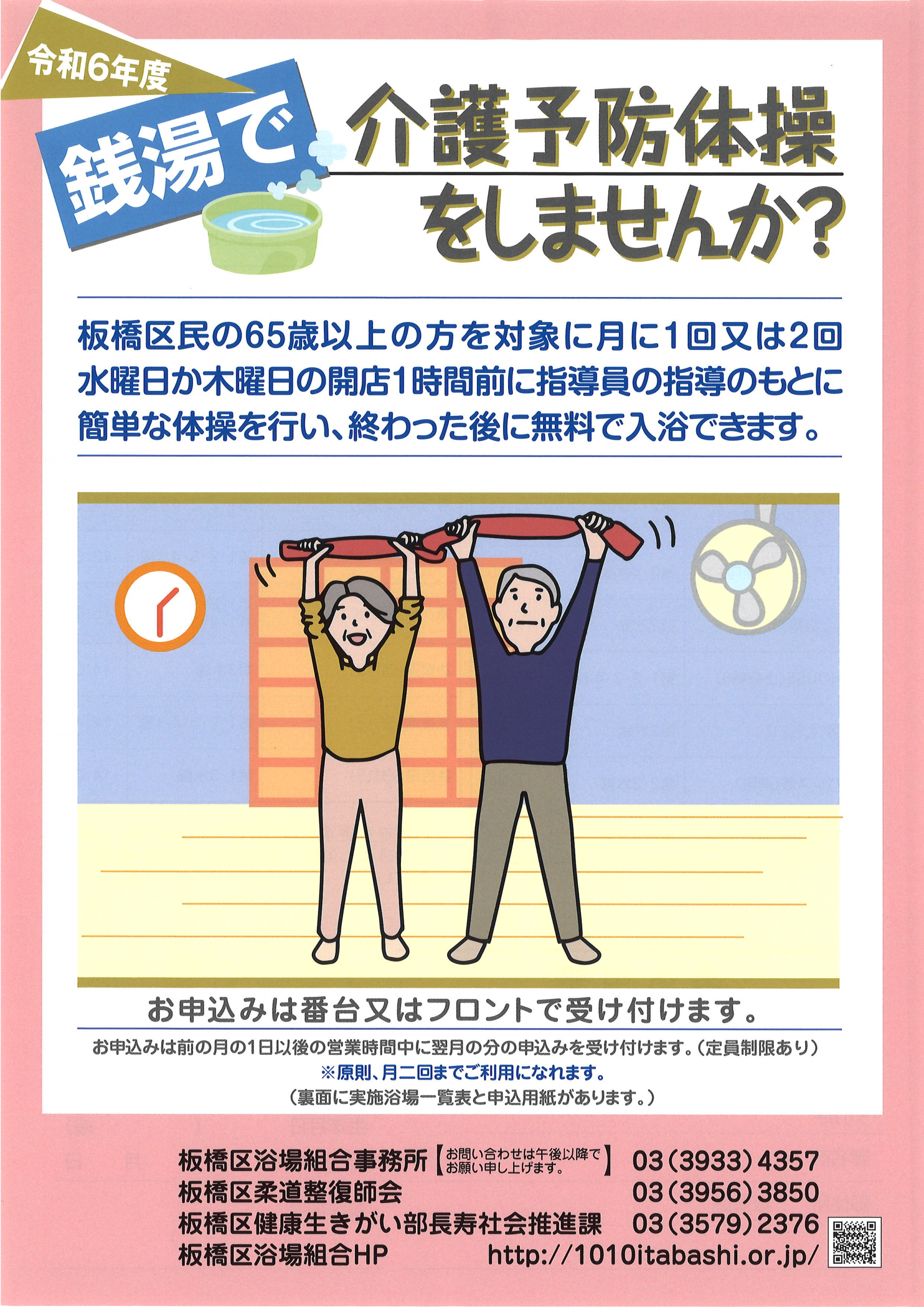 フレイル予防の一つで板橋区では銭湯で介護予防体操を行っています。