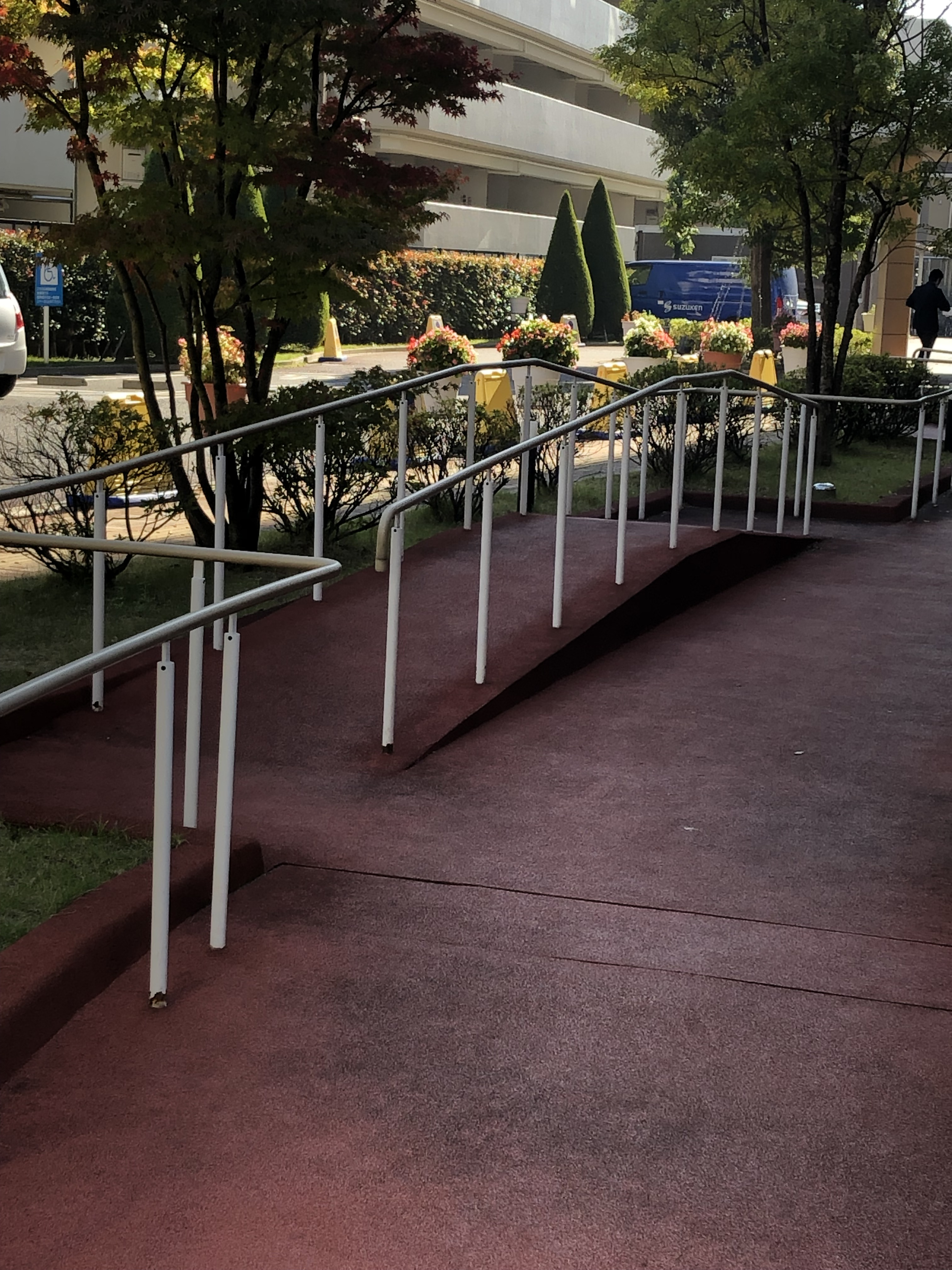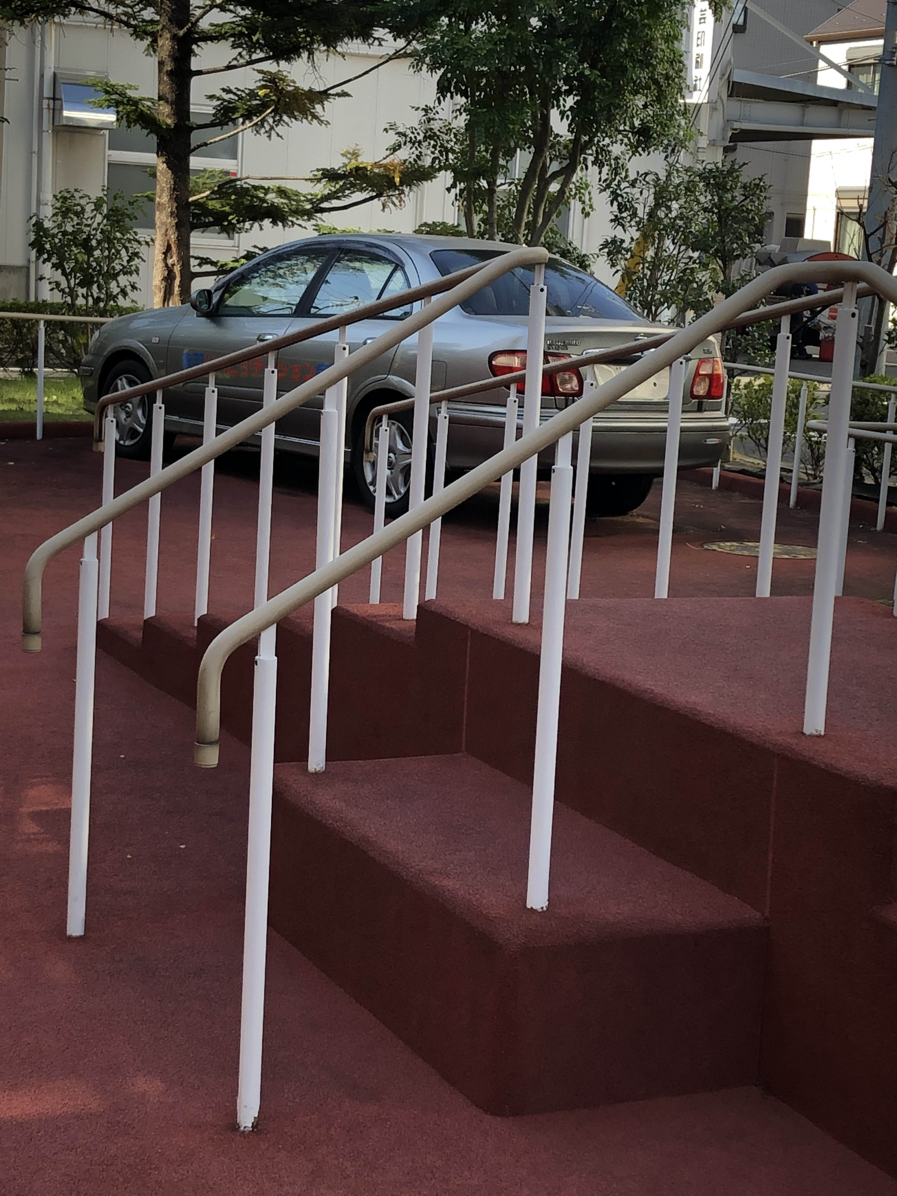 病院に到着してびっくり!!駐車場スペースに、実践できるリハビリ環境が整っていました。道路の段差や階段のリハビリができるスペース。車の乗り降りのリハビリができるスペースなどなど。訪問した際にも、職員さんに付き添われてリハビリ中の患者さんがいらっしゃいました。自宅に帰った状況を想定したリハビリを実施してくださっていることがわかり、とても感動しました。