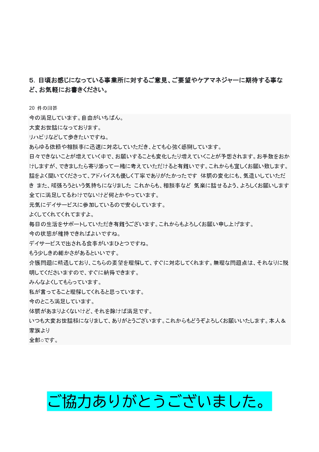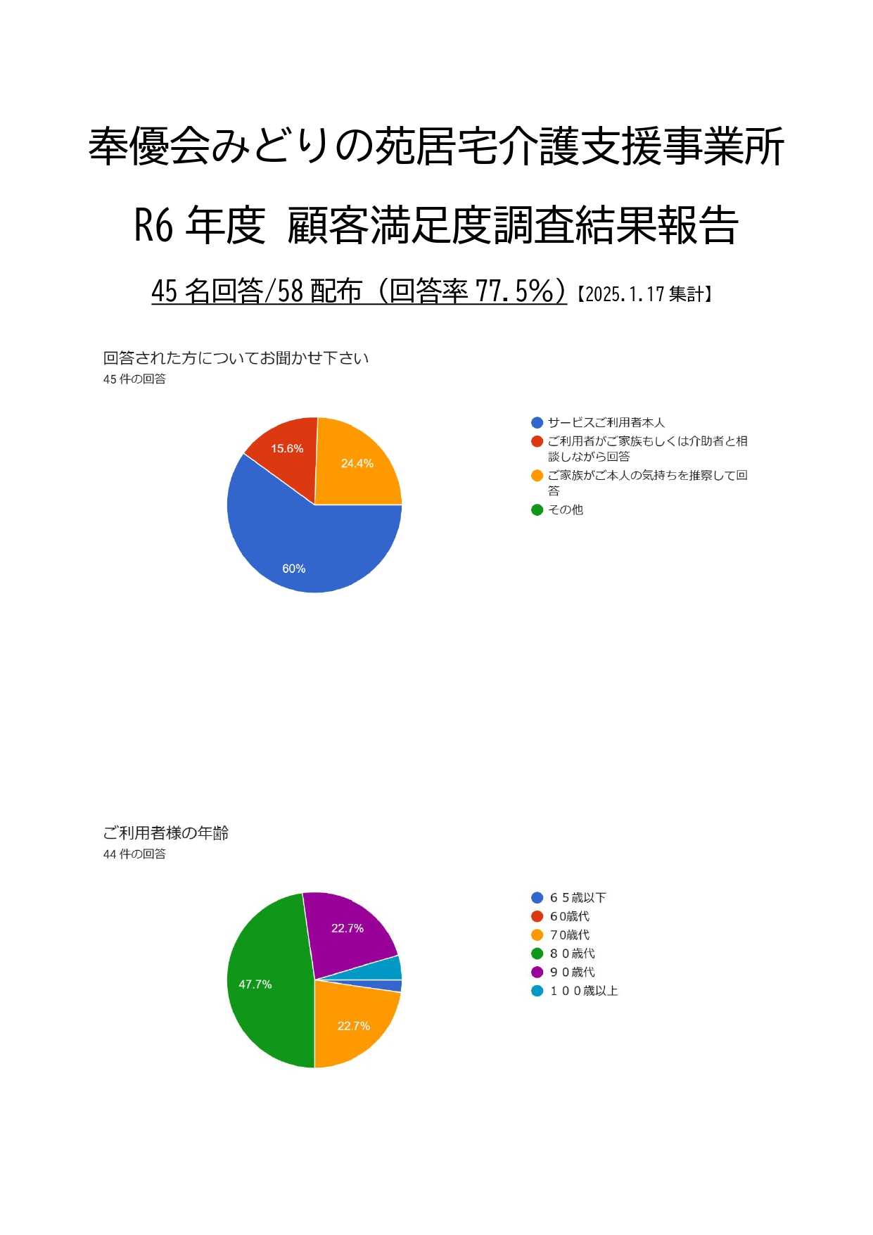 【みどりの苑居宅】みどりの苑満足度調査集計報告