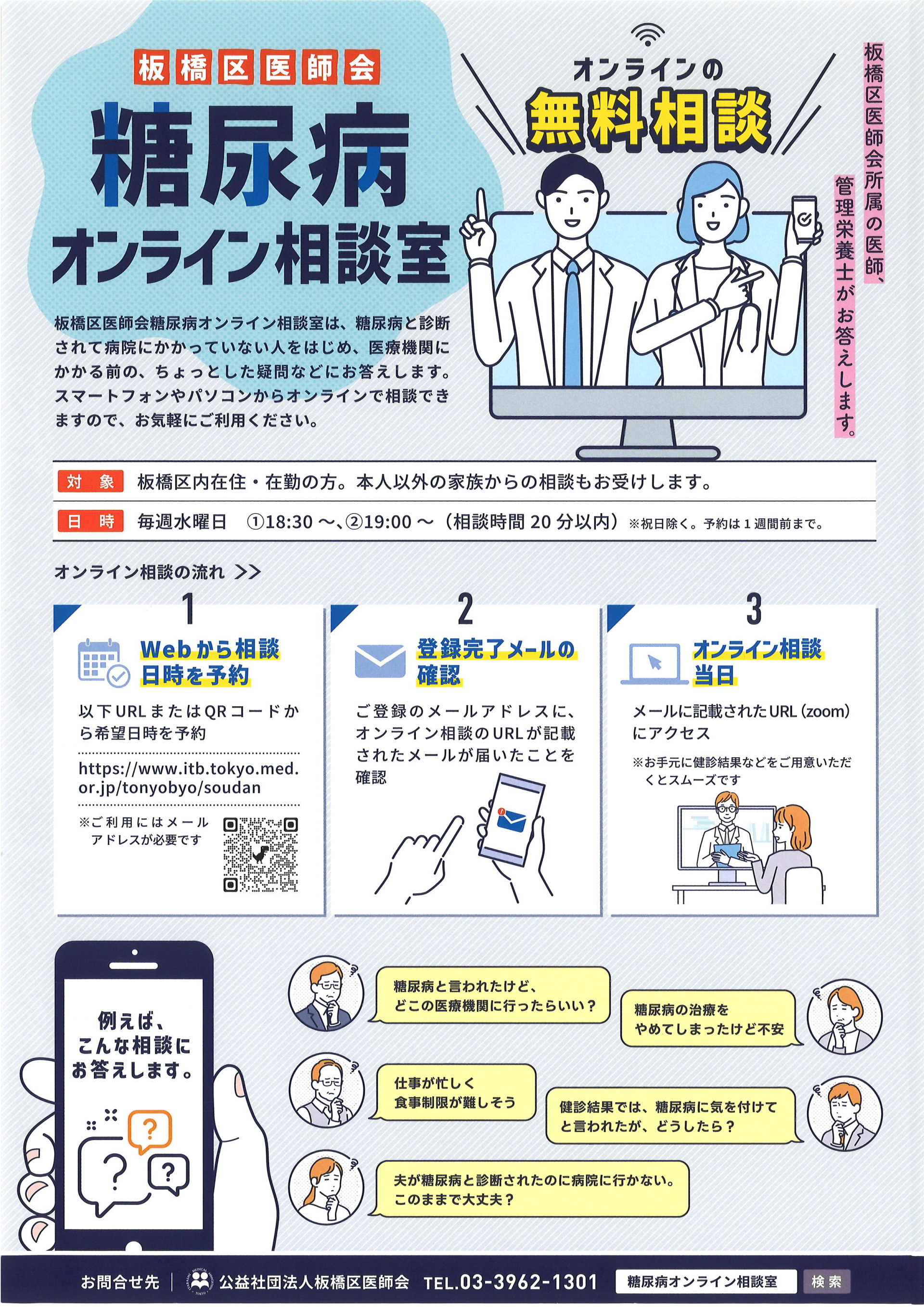板橋区医師会糖尿病オンライン相談室のお知らせです。