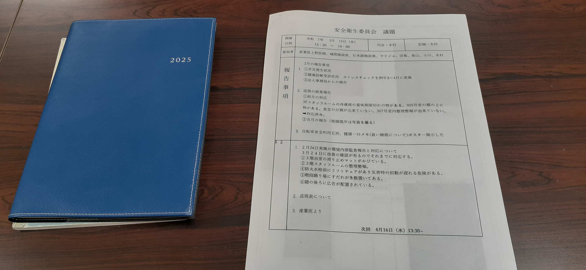 2025.03.19 活動報告 【みどりの苑居宅】安全衛生委員会 Tweet シェアする 本日13時半より、安全衛生委員会に参加してきました。居宅事務所は日程の関係で今まで出れませんでしたが今月より参加できるようになりました。産業医の先生からのお話も伺えて衛生面での意識が高まります。 OM 前の記事 2025.03.19 活動報告 【みどりの苑居宅】防災員会に出席しました 次の記事 2025.03.19 活動報告 【みどりの苑居宅】手作りパン販売 一覧へ戻る