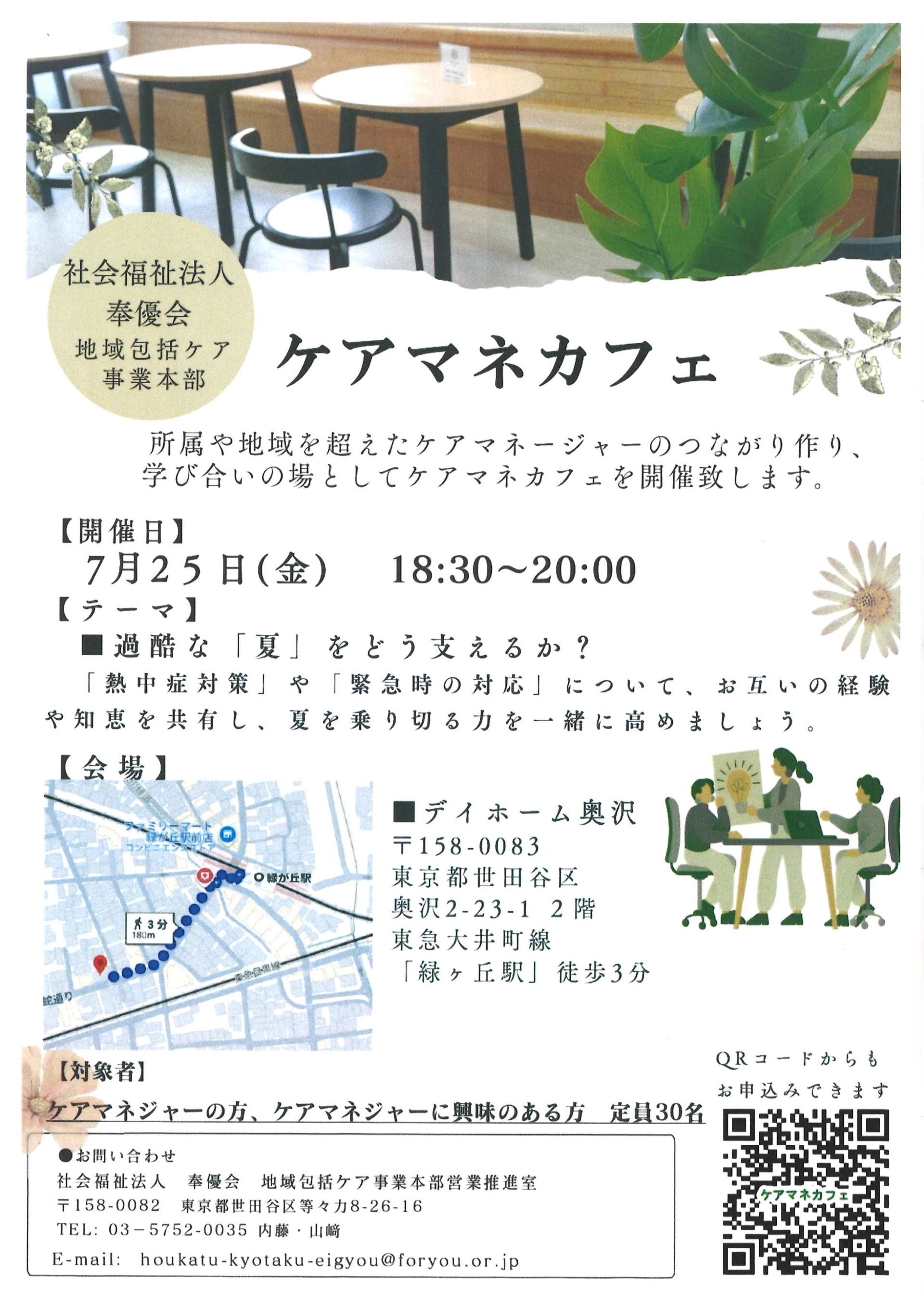 【みどりの苑居宅】7月度ケアマネカフェのお知らせ