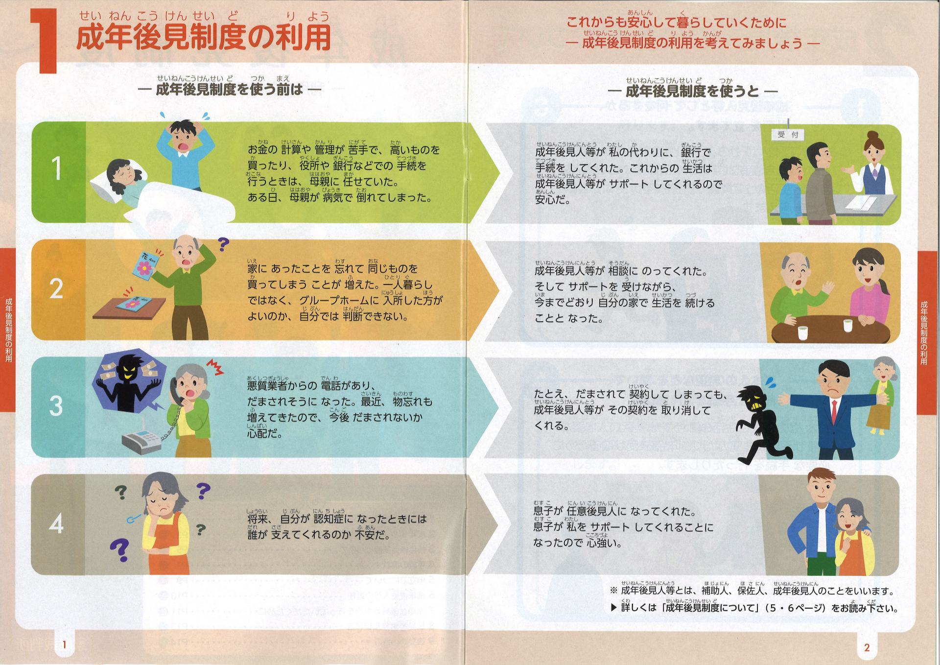 先日成年後見制度について相談を受けました。この先の事について心配なので知っておきたいとの事でまず行政が発行しているパンフレットを取り寄せて板橋区社会福祉協議会へ電話連絡し相談内容を伝え直接話す事を希望する場合は予約が必要な事をお伝えしました。誰もが将来の事に不安を抱えていると思いますので専門の相談窓口がわからない方には入口から指し示してあげる事が必要だと思います。 OM