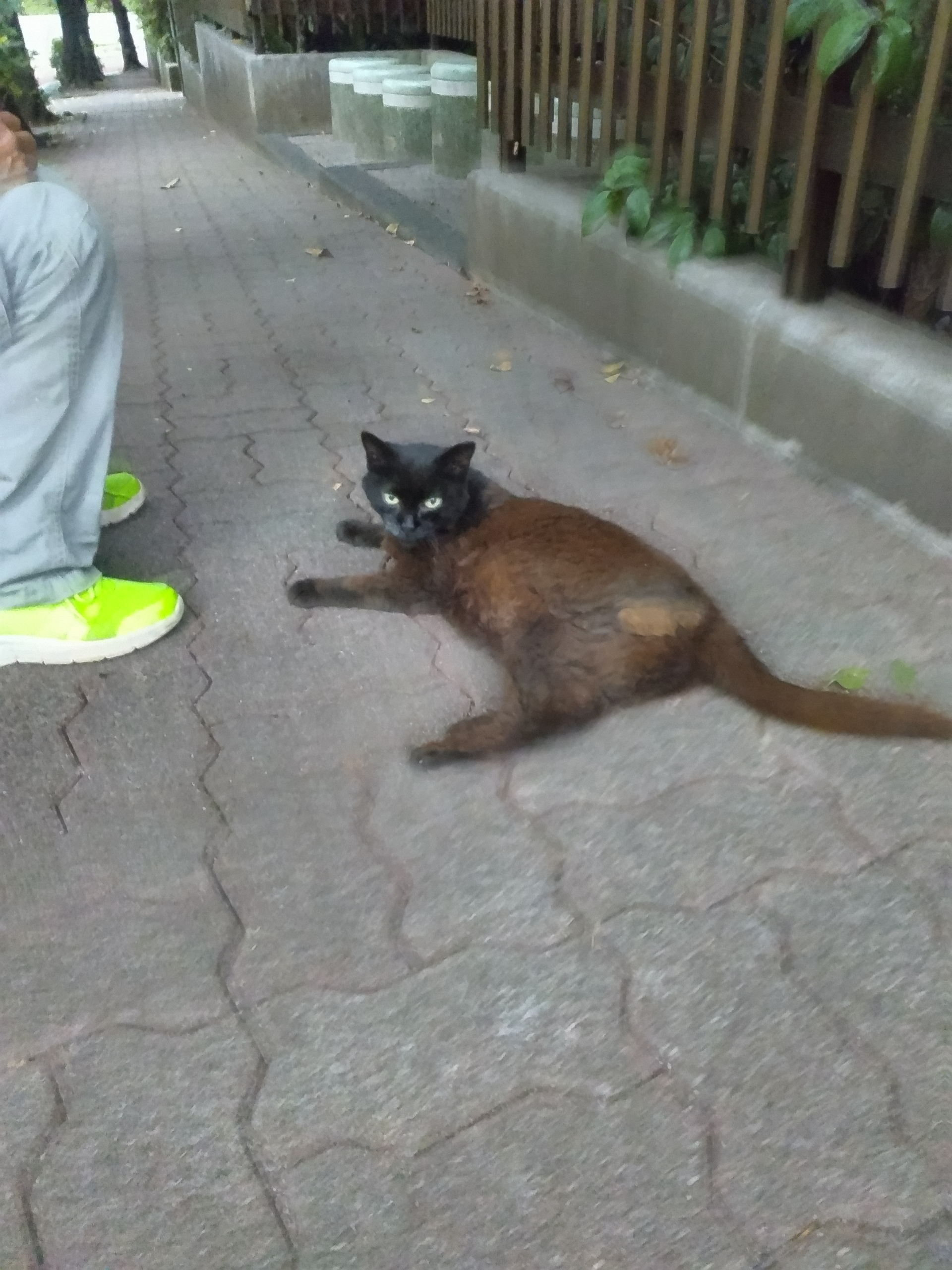 2025.09.02 活動報告 【みどりの苑居宅】猫がいる場所 Tweet シェアする みどりの苑の裏側社員通用口から自転車置き場への通路には長年(たぶん)猫が2匹います。近隣の人いわく2匹は親子らしくこげ茶の方が母親、白と茶のミックスが息子。名前もあって母親は(かあちゃん)そのままですね。息子は大きいから(デカ)だそうです。昼間は向かいにある公園の茂みにいて夕方になるとのそのそとみどりの苑の裏口付近にきて寝そべっています。デカは人見知り、かあちゃんは近づいても逃げません。帰り際にこの猫たちを見ると癒されます。OM 前の記事 2025.09.02 活動報告 【みどりの苑居宅】ケアプラン点検実施しました 次の記事 2025.09.01 活動報告 【みどりの苑居宅】格言 一覧へ戻る