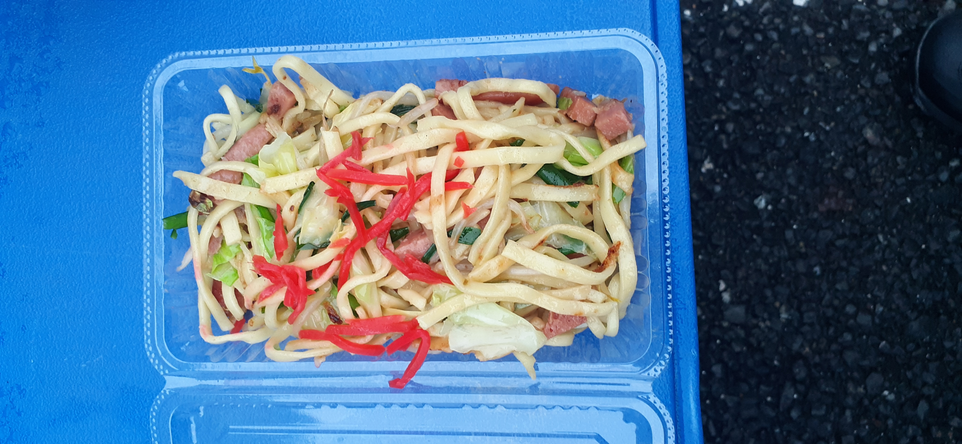 上のような神輿がいくつも並べられてました。下の画像は沖縄そばを買って食べました。OM