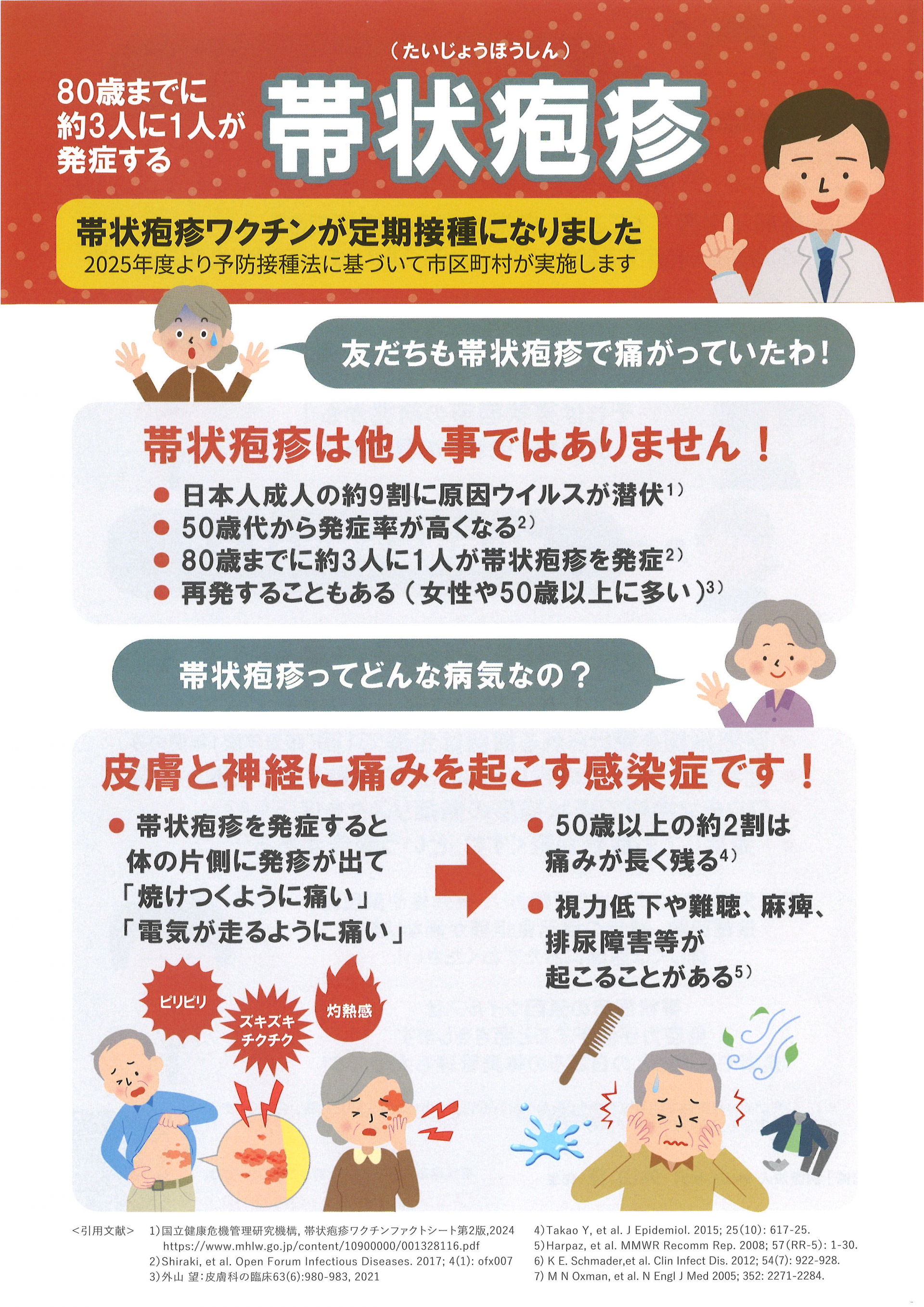 2025.12.05 活動報告 【みどりの苑居宅】帯状疱疹ワクチン Tweet シェアする 2025年より帯状疱疹ワクチンが定期接種になったのはご存じでしょうか?50歳代から発症率が高くなると言われている帯状疱疹。私も昨年夏に初めて罹り3か月ほど後遺症に悩まされました。ワクチンの効果についてはまだ接種してないのでわかりませんがなった時の辛さを考えたら早めに接種しておいた方がよいかと思いました。OM 前の記事 2025.12.08 活動報告 【みどりの苑居宅】事例研究発表会冊子届きました 次の記事 2025.12.05 活動報告 【みどりの苑居宅】介護支援専門員更新研修2日目を受講しました。 一覧へ戻る
