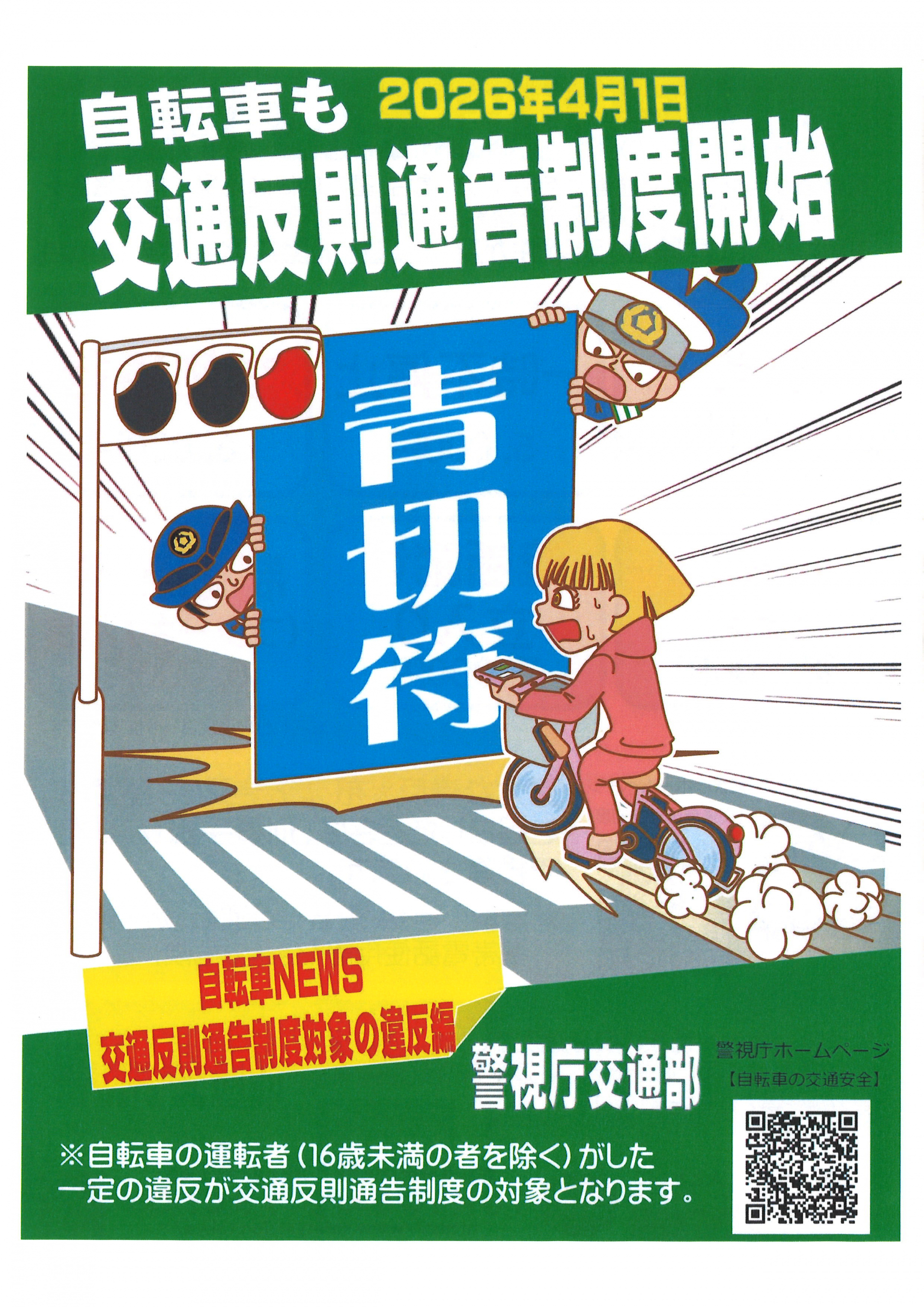 2026年4月1日より自転車も交通反則通告制度開始となります。