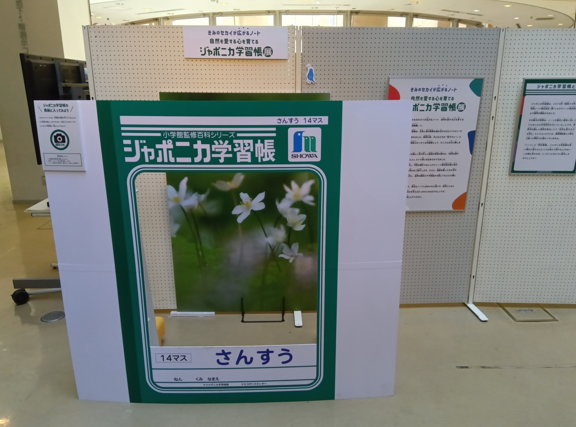 地下にジャポニカ学習帳の表紙になれる展示がありました。