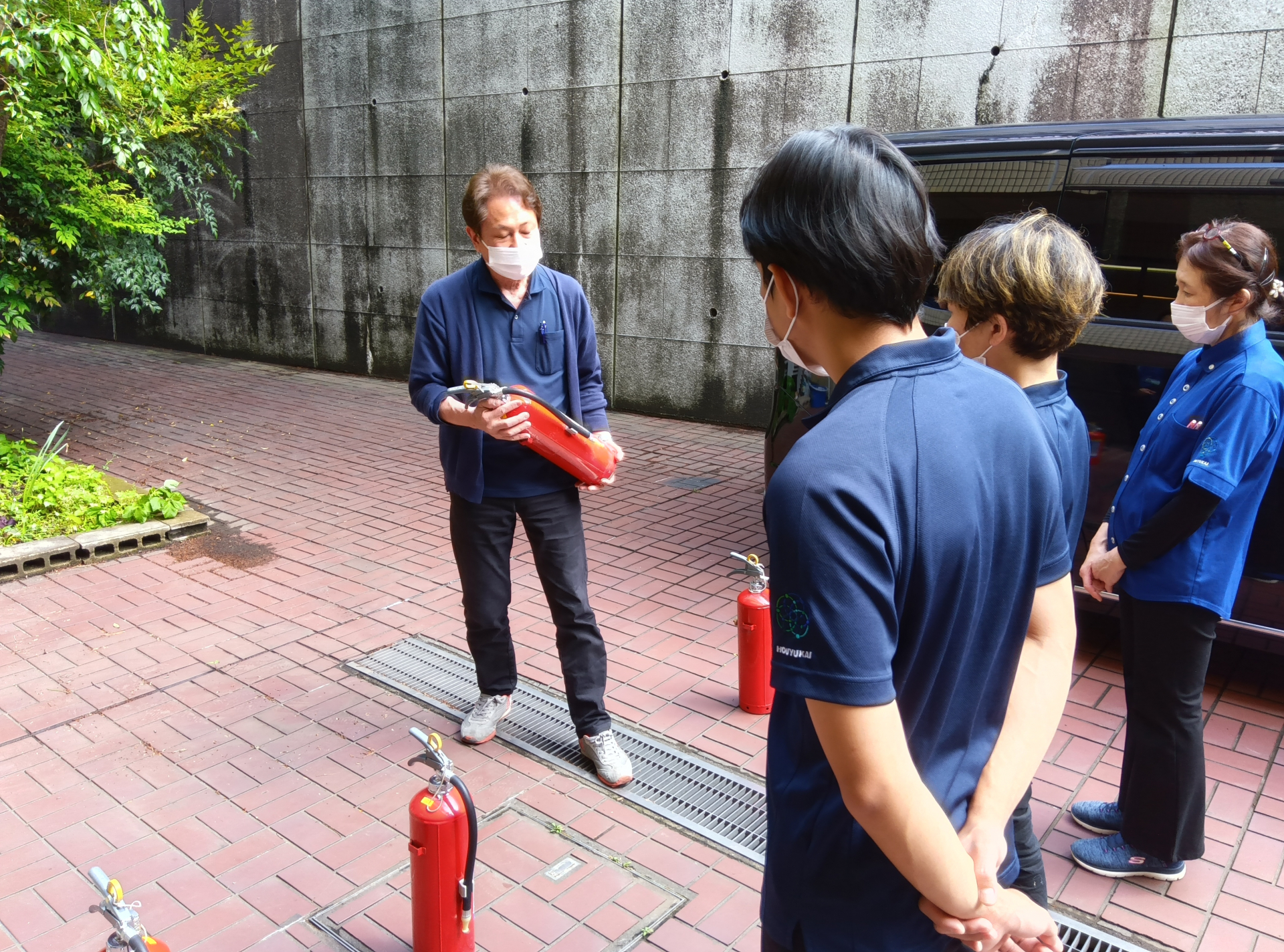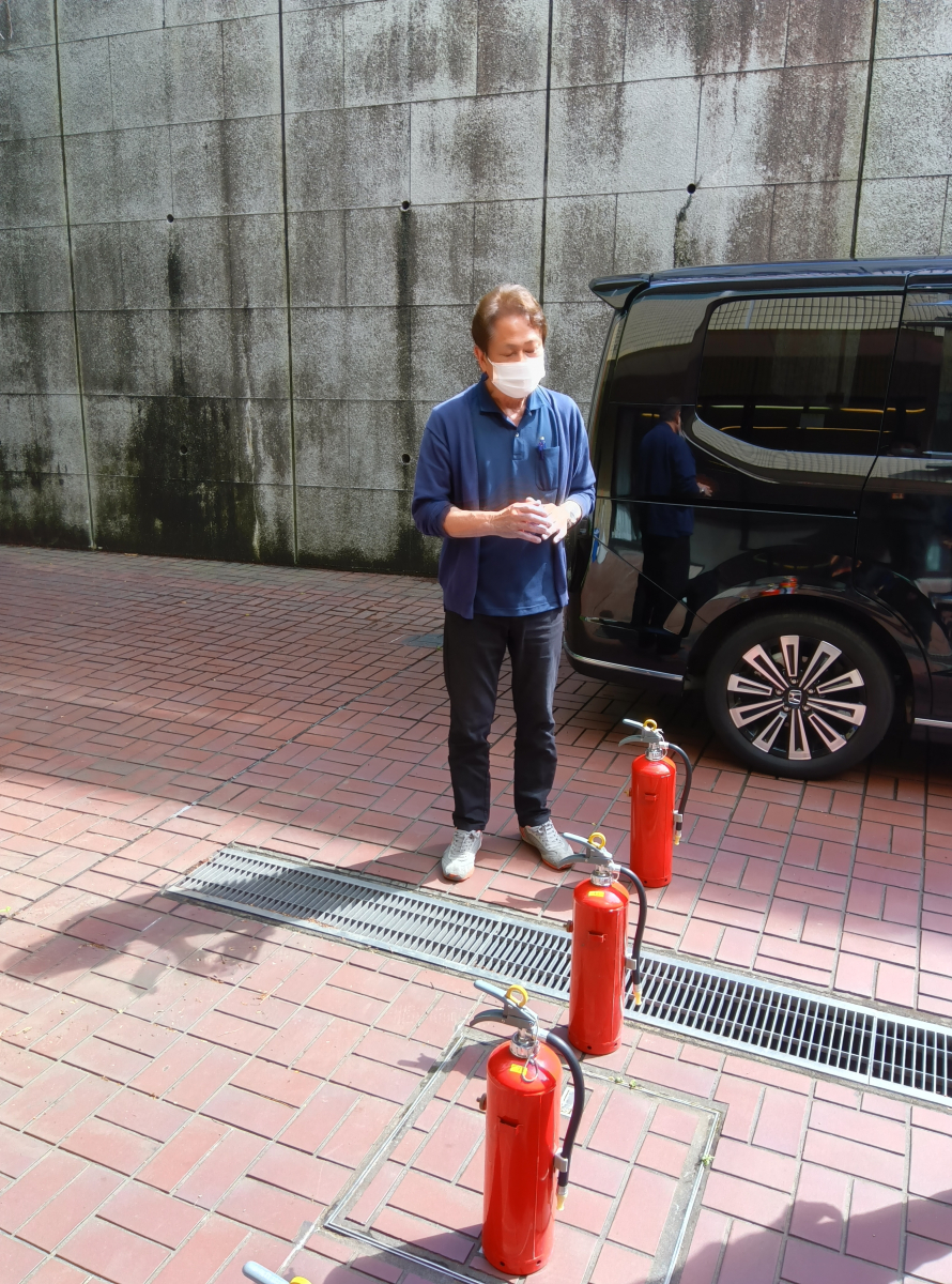 初期消火の際の消化器の使い方などを学びました。