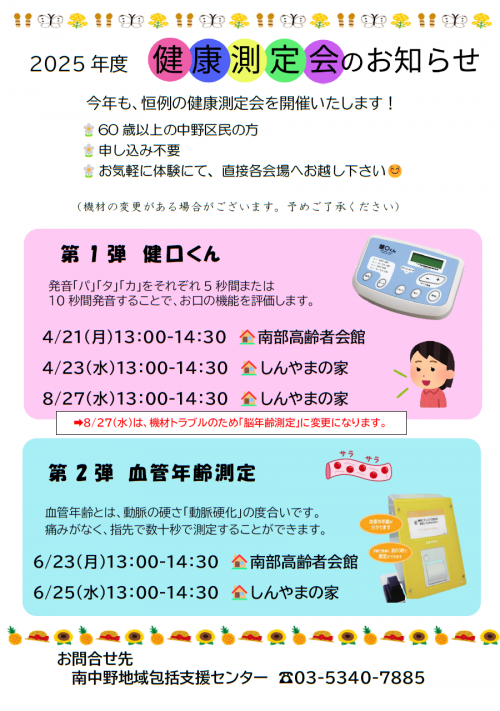 2025.11.01 【南中野包括】ハロウィンがいっぱい! 活動報告 2025.10.31 【南中野包括】優っくり屋台村 活動報告 2025.10.30 【南中野包括】ランチの会(南中野区民センター) 活動報告 2025.10.29 【南中野包括】脳年齢測定(しんやまの家にて) 活動報告 2025.10.28 【南中野包括】地域の支え手インタビュー第3弾 ~南台のさわやかダンディ~ 地域包括支援センター #インタビュー 2025.10.27 【南中野包括】老い支度・終活2025年10月号 活動報告 2025.10.25 【南中野包括】脳年齢測定(南部高齢者会館にて) 活動報告 2025.10.24 【南中野包括】~千代田會館運営推進会議~ 活動報告 2025.10.23 【南中野包括】年に1度の健康測定祭! 活動報告 2025.10.22 【南中野包括】~法務支援を受けました~ 活動報告 2025.10.21 【南中野包括】南部ミニデイ ~カラオケ大会~ 地域包括支援センター 2025.10.20 【南中野包括】職員の笑顔!!とある争奪戦… 地域包括支援センター 2025.10.18 【南中野包括】初任者研修 ~白金の森にて~ 活動報告 2025.10.17 【南中野包括】今日も明日もしんやまの家 地域包括支援センター 2025.10.16 【南中野包括】脳年齢測定会を開催します! お知らせ #測定会 1 2 3 … 32