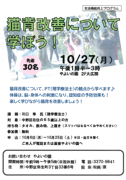 2025.10.17 【南中野包括】今日も明日もしんやまの家 地域包括支援センター 2025.10.16 【南中野包括】脳年齢測定会を開催します! お知らせ #測定会 2025.10.15 【南中野包括】オレンジカフェ 10月 活動報告 #オレンジカフェ 2025.10.14 【南中野包括】地域ケア個別会議 活動報告 2025.10.10 【南中野包括】奉優会のCM動画 放映開始! お知らせ 2025.10.09 【南中野包括】第50回みなみなかの地区まつり! 活動報告 2025.10.08 【南中野包括】参加できなかった「ミニ運動会」 地域包括支援センター 2025.10.07 【南中野包括】「猫背改善について学ぼう!」のお知らせ お知らせ 2025.10.06 【南中野包括】民生児童委員協議会 地域包括支援センター 2025.10.04 【南中野包括】地域包括支援センター医療職の会(第1回)~中野区役所にて~ 地域包括支援センター 2025.10.04 【南中野包括】10/4は南中野地区まつりに出店します! お知らせ 2025.10.03 【南中野包括】高齢者虐待防止の研修を開催しました 活動報告 2025.10.02 【南中野包括】「家族介護教室」のお知らせ お知らせ 2025.10.01 【南中野包括】脳いきいき講座(2日目)を開催しました 活動報告 2025.09.30 【南中野包括】手作りが沁みる…お食事会 活動報告 1 2 3 4 … 33