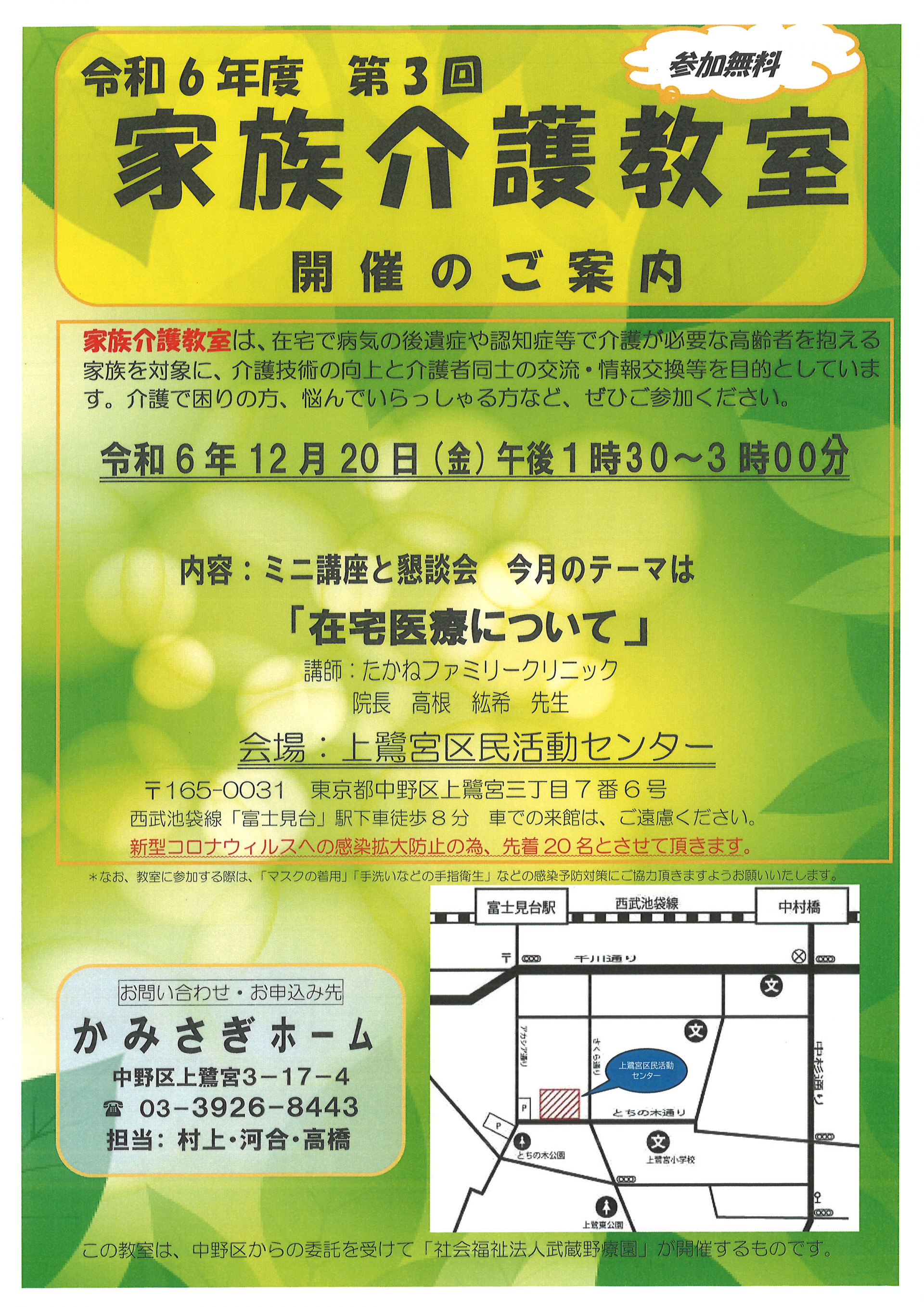 【南中野包括】12/20 介護家族教室「在宅医療について」