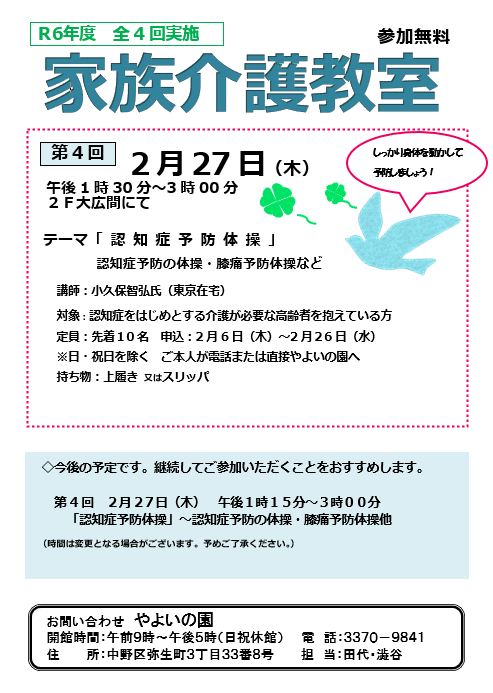 【南中野包括】2/27家族介護教室「認知症予防体操」(申込2/6~)